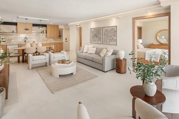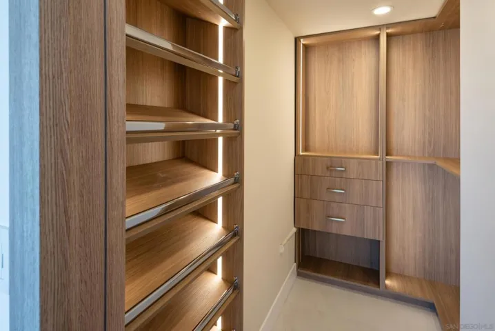NEVER LIVED IN – newly renovated masterpiece designed by Michael Roy and custom built by Yaz Kadra, with Saraay Remodeling, offering breathtaking bay & city skyline views. Impeccably crafted with high-end finishes, appliances, and fully custom furnishings, this residence has been meticulously reimagined, down-to-the-studs, with new electrical, plumbing connections, HVAC, and ducting systems. Upon entering, you’ll be greeted by an immediate sense of spaciousness, with split bedrooms designed to maximize the stunning views through extra wide custom pocket doors. Experience the elegance of 48 x 48 imported Porcelain tile flowing out to the balcony. The 9ft non- dropped ceilings enhance the sense of space, while smart storage solutions maximize organization. A culinary haven, the kitchen features custom European cabinetry, top-of-the-line, trendy white glass appliances and the timeless sophistication of 3” Quartzite Taj Mahal counters. Designer walk- in closets are illuminated by ambient LED lighting. A newly added versatile den, perfect for a home office or guest suite, features a custom-sized bed with integrated storage.