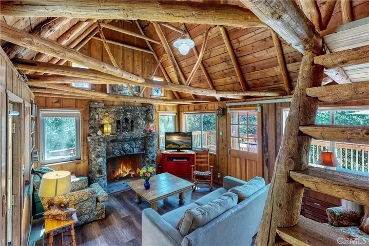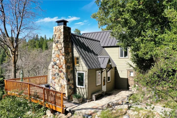 Super Private “Off-The-Beaten-Path” Location yet simply minutes to Cedar Glen Shopping & Restaurant Commercial District find this Unique Emotional Vintage Home that is nestled hillside on an approximate 24,890 sqft gentle Down Sloping Lot embracing glorious Sunrises. This 1,176 sqft Private Gem has been Meticulously Maintained with many upgrades over the 30 Years of Pride of Ownership inclusive of a most recent Brand-New Standing Seam Insulated Metal Roof and less recent Dual Pane Windows throughout. Main Level Features: Storybook Character Custom Classic Original Stone Fireplace reminiscent of a Quaint European Hunting Lodge with Vaulted Wood Beamed Ceilings, Knotty Pine Walls that Glow the Color of Honey, Quality Laminate Wood Flooring, upgraded Barn Door Slider Access opens to the Over-sized Outdoor Entertaining Deck to take in the Tranquility of the Mountain Ridgeline Views. Fully Remodeled Kitchen boasting Subway Tile Backsplash accented with Butcher Block Counters, Exposed Apron Sink and Newer Stainless Appliances, plus cozy Main Bath with Enticing Claw Foot Soaking Tub. Upper-Level Features: Two Charming Jack and Jill Style Bedrooms with Ceiling Fans and more than ample head clearance with shared access to the Toilet and Sink in between. Lowest Exterior Level Features: Exterior Access Only to the Permitted 380 sqft Studio/Workshop/Game Room/Extra Storage with Wet Sink for all the Mountain Necessities and Keepsakes!