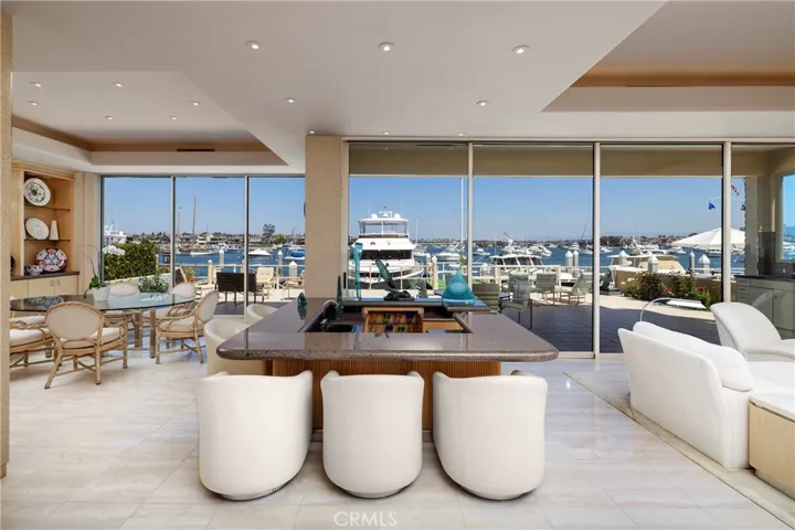 Rare Double-Lot Bayfront Opportunity in Newport Harbor. A truly once-in-a-lifetime offering, this custom-built bayfront estate sits on a rare double lot in one of Newport Harbor’s most coveted locations. Showcasing nearly 60 feet of bay frontage, the property commands sweeping views of the turning basin, city lights, Fashion Island, and the surrounding mountains—an ever-changing backdrop of Southern California beauty. Designed ahead of its time, the residence welcomes you through a dramatic gated entry featuring a tranquil pool, spa, and waterfall. Double glass doors open to reveal soaring ceilings and expansive living spaces that exude coastal sophistication. The grand living room with fireplace, sit-down bar, and formal dining area is ideal for effortless entertaining. The gourmet’s kitchen is a dream, featuring sleek black granite countertops, custom cabinetry, a center island with a gas range, breakfast nook, built-in desk, and side-by-side Sub-Zero refrigerator and freezer. The main level also offers a private office or den, guest bedroom and bath, maid’s quarters, and an oversized three-car garage. A sweeping staircase—or private elevator—leads to the upper level, where the primary suite offers bayfront views, a fireplace, dual bathrooms, and custom walk-in closets. An oversized guest suite features a private covered balcony to enjoy the views, a walk-in closet, and an en-suite bath. Three additional en-suite bedrooms complete the upper floor. Outdoor living is effortless with both sun-soaked and covered patio areas along the bayfront. The private dock accommodates an 80-foot vessel, with additional space for a whaler on the side tie. This is a rare chance to own one of Newport’s landmark bayfront properties—an extraordinary blend of space, location, and timeless design.