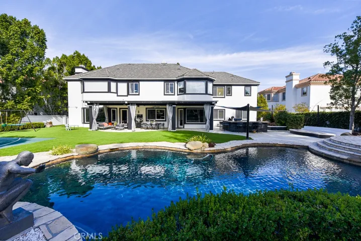 Step outside into a true paradise, where a sparkling pool invites you to unwind and an incredible half-court basketball court adds a playful touch to the resort-like atmosphere. Designed for both relaxation and entertaining, the outdoor living spaces are nothing short of extraordinary, with ample space for dining, lounging, and enjoying the Southern California sun.
