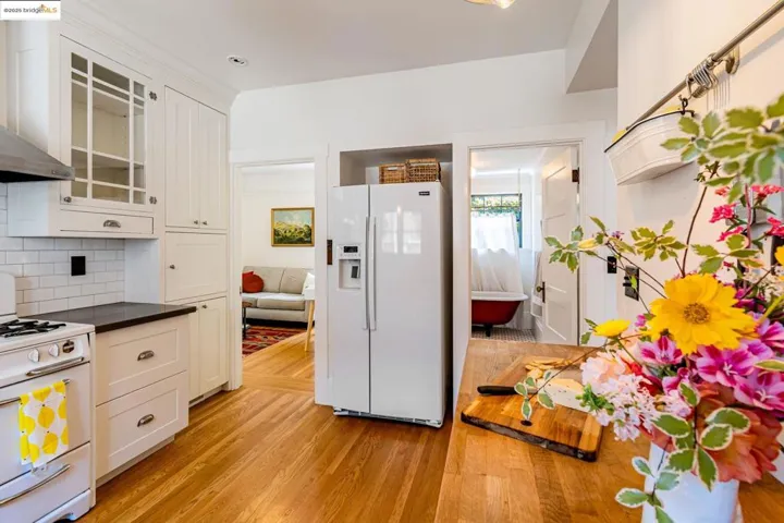 Classic Craftsman 4 BR/3 BA home that has been remodeled and updated. 2 BR’s and 2 baths on main level. 3 Br’s, Bath, and laundry on upper level. Hardwood floors throughout. Kitchen with stone counters and classic stove. Dining room with fireplace. Living room has Bay window overlooking private front yard. Pocket doors between living room and dining room. Nice private Backyard. Beautifully Remodeled 1BR unit at back of property has private yard with fountain and extra outdoor shower that was used as Airbnb rental. Close to Rockridge shopping, dining, and transportation.