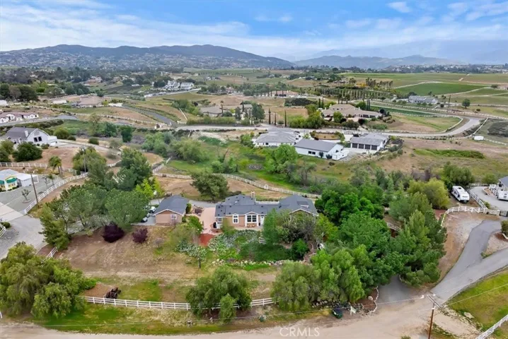 You don’t want to miss this property! It’s truly a MAGICAL WONDERLAND in the HEART OF TEMECULA WINE COUNTRY with amazing views and park-like grounds close to wineries. 1.94 Acres zoned C/V (Citrus/Vineyard) and NO HOA. Flat, useable land in the front & rolling meadow in the back. Perfect for horses, fully fenced, room to add ADU, barn, outbuilding or plant a vineyard. HOT AIR BALLOONS are part of your daily views while hanging out in the gazebo or relaxing in the hot tub or swing on the covered wrap-around deck. MULTI-GEN manufactured home on permanent foundation has 2,416sf, 4 Bedrooms + Office, 3 Baths, with Studio En-Suite & Kitchenette, walk-in closet + private entrance, perfect for guests, extended family or RENTAL INCOME + 3-car detached Garage. There are also 4 drive-through gates, 3 access gates, plus a separate area for your RV with hookups, 2 fire hydrants, 2 septic tanks, above ground private spa and much more. Only love and thoughtfulness has gone into creating this tranquil oasis with flagstone pathways, landscaping, oak tree canopy over the circular drive and did we say views? YOU WILL LOVE THIS PLACE!!! (Don’t forget to check out the virtual tour link.)