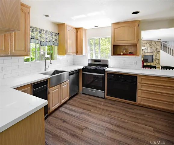 Inside, the inviting family room with a cozy fireplace flows seamlessly into the living room, which also features a fireplace, and the dining room. The primary suite bathroom has been updated with new flooring, paint, countertops and fixtures, and the kitchen has been updated with new countertops, flooring, and fixtures. It is equipped for a gourmet chef, with ample cabinetry, a dishwasher, gas and electric stoves, and under-cabinet lighting. The home offers two primary suites: one downstairs and one upstairs. The upstairs suite is a true sanctuary with a balcony overlooking the park-like grounds, a grand bathroom with dual vanities, a large shower, a jetted spa tub, and a large walk-in closet. Additional features include fresh paint throughout, a three-car garage with direct access, and extra parking space suitable for an RV, boat, or additional vehicles. From Bonnie Jean Lane, you’ll also have quick access to shopping centers, stores, and restaurants.