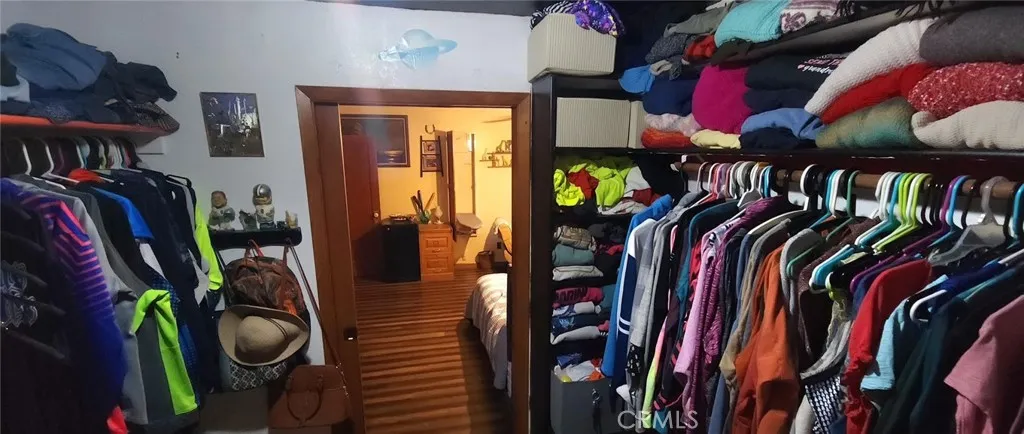 Inside, the open floor plan showcases cohesive wood finishes, creating a warm and inviting atmosphere. The living room features an energy-efficient wood-burning stove, a built-in entertainment area, and a hutch. The guest bedrooms boast walk-in closets with elegant pocket doors and stunning tile flooring. The spacious primary suite includes bamboo flooring, a large built-in wardrobe, a walk-in closet, and a beautifully remodeled en suite bathroom with a tiled walk-in shower.