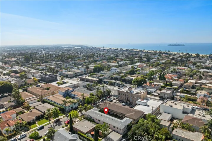 Designed for smart and efficient living, the home features dual-pane windows, original hardwood floors, and a large bay window that fills the space with natural light. The open-concept layout seamlessly connects the spacious living and dining areas, creating an ideal setting for entertaining or relaxing at home. The remodeled kitchen is a showstopper, complete with quartz countertops, a farmhouse sink, and stainless steel appliances. Both bedrooms are generously sized and offer ample closet space, with the added potential to incorporate in-unit laundry for even greater convenience. Additional highlights include a one-car garage, community laundry, and low HOA dues. This home is just minutes from Belmont Shore, 2nd Street’s popular shopping and dining district, and Bluff Park. Enjoy living in a vibrant, walkable neighborhood surrounded by coffee shops, boutiques, and top-rated schools.