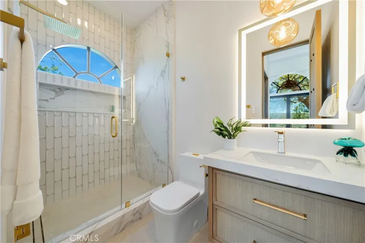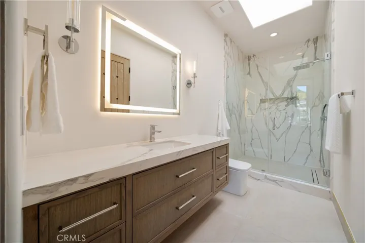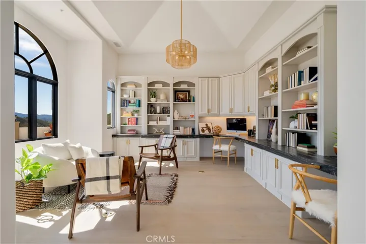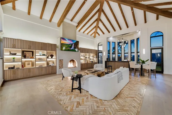 • Luxurious Primary Suite: Includes a sitting room, cement fireplace, European white oak/glass walk-in closet, a spa-like bathroom with a cement soaking tub, custom shower, and a massage/yoga room.