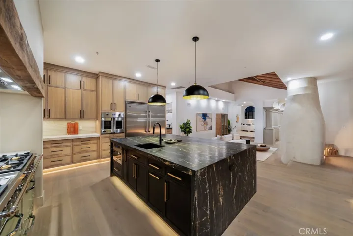 • Gourmet Kitchen: Custom cabinetry, dual Viking refrigerators, 66-inch Viking Tuscany range, two dishwashers, and a butler’s pantry.
