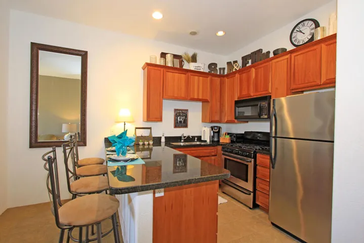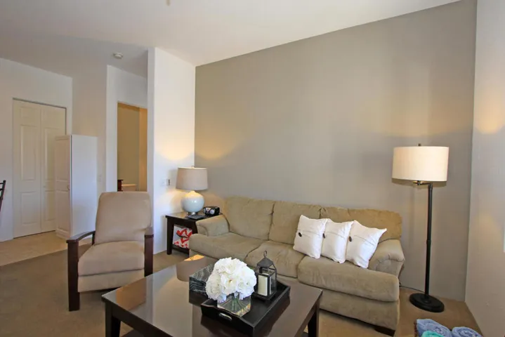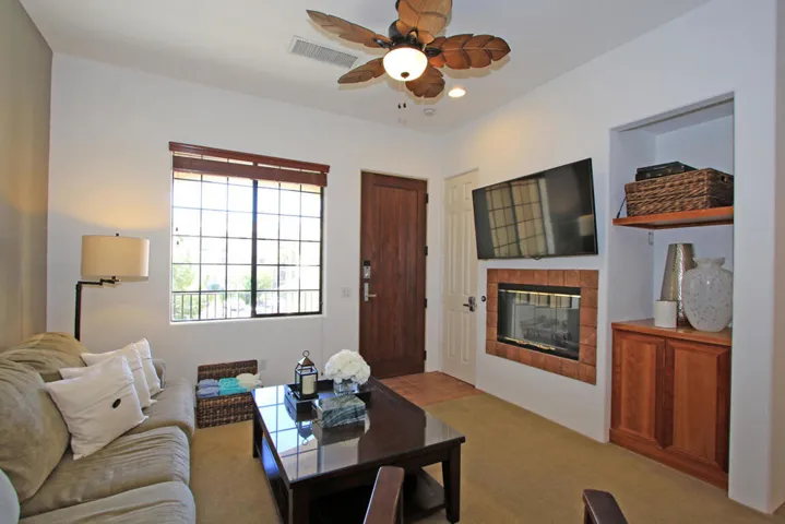 Now Available. Long-Term Lease at $1950/MonthWelcome to Casitas Las Rosas in the heart of La Quinta! This luxury top-floor 1BD/1BA villa is turnkey furnished and ideally located next to Embassy Suites and just steps from the shops, restaurants, and charm of Old Town La Quinta.Enjoy a spacious, open layout with a comfortable family room featuring a sleeper sofa, TV, and ample space to unwind. The fully equipped kitchen makes dining in a breeze–perfect for everything from quick bites to cozy dinners.The primary suite boasts a king bed, walk-in closet, and easy access to the full bathroom with a tub/shower combo. A private balcony with outdoor seating offers south-facing sunshine–perfect for morning coffee or evening relaxation.Additional features include in-unit laundry with oversized stackable washer/dryer, and access to community pools and spas.No smoking, no pets.