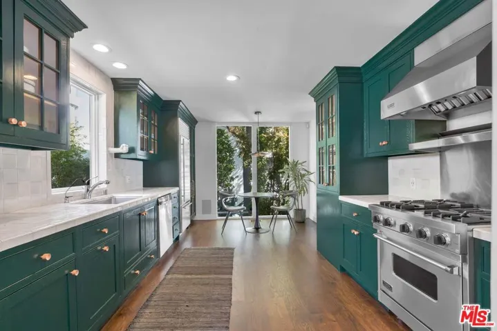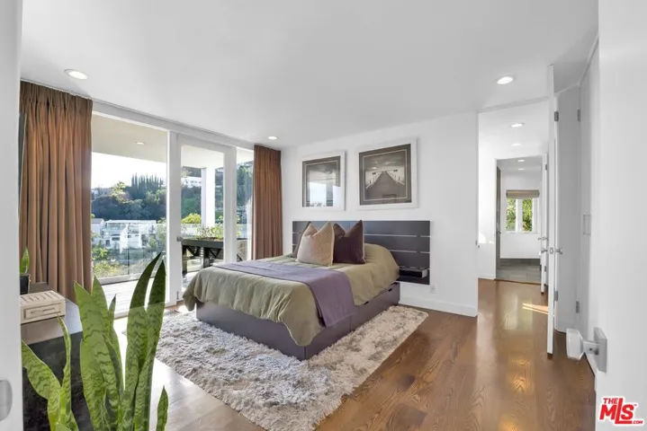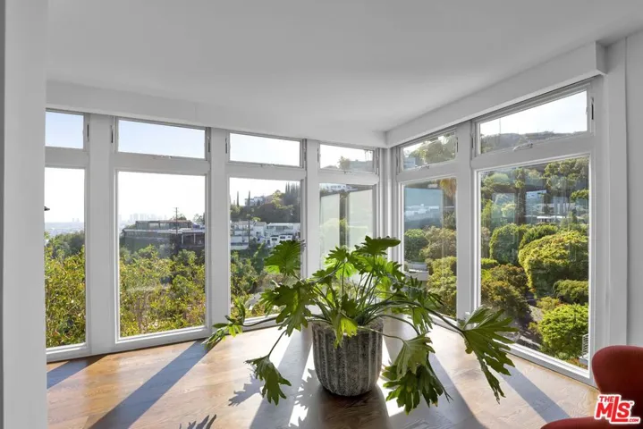 Virtual tour upon request! Perched atop the prestigious Hollywood Hills, 8450 Carlton Way is a rare and radiant example of mid-century modern design reimagined for the contemporary lifestyle. From the moment you arrive, you’re enveloped by sophistication, serenity, and panoramic splendor as floor-to-ceiling glass walls frame sweeping, unobstructed vistas that stretch from the glittering skyline of Downtown Los Angeles to the tranquil blue horizon of the Pacific Ocean.Step inside to discover refined interiors bathed in natural light, accentuated by rich hardwood floors and seamless indoor-outdoor flow. The spacious open-concept living area invites both grand entertaining and intimate evenings, while custom electric blinds offer effortless ambiance control with the touch of a button.The sleek, skylit powder room glows with natural light, and a dedicated office provides the perfect creative escape. A luxurious steam shower elevates daily rituals, and included blueprints for a master suite present the opportunity to expand and personalize the home to perfection.Outside, an expansive wraparound deck creates a private retreat in the sky, ideal for sunset cocktails, alfresco dining, or morning meditation against a cinematic backdrop. Recent enhancements include a frameless glass balcony, newly stained flooring, modern pedestrian gate, and designer exterior lighting. Lush, drought-tolerant landscaping with a drip irrigation system adds a fresh yet sustainable flourish.The property also features a two-car garage with a brand-new motor, Tesla charging station, and is secured with the latest perimeter surveillance system. A full Savant smart home system integrates sound, lighting, and climate with intuitive ease, bringing intelligent luxury to everyday living.Whether you’re entertaining under the stars or quietly taking in the view from your deck, 8450 Carlton Way is a timeless jewel in one of Los Angeles’ most sought-after enclaves, a home that embodies modern glamour, architectural pedigree, and boundless possibility.