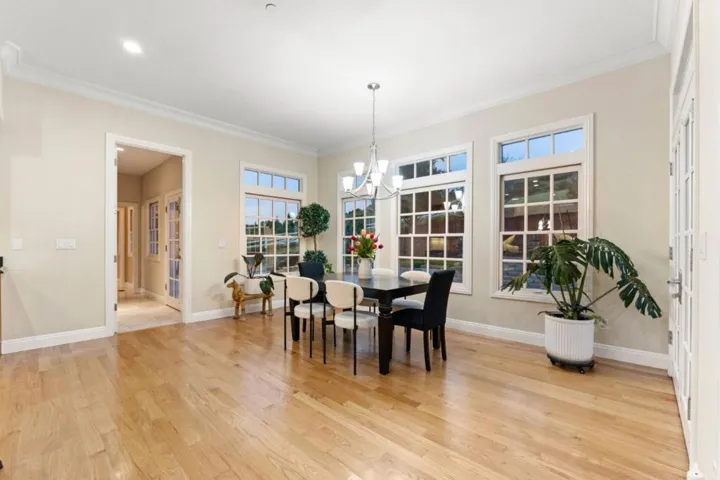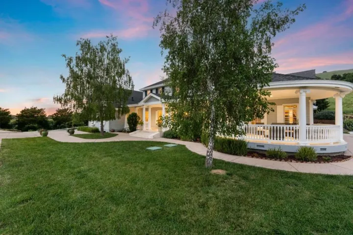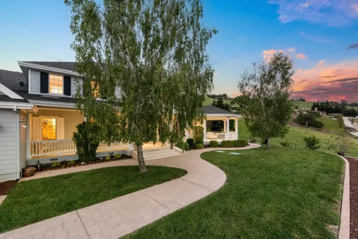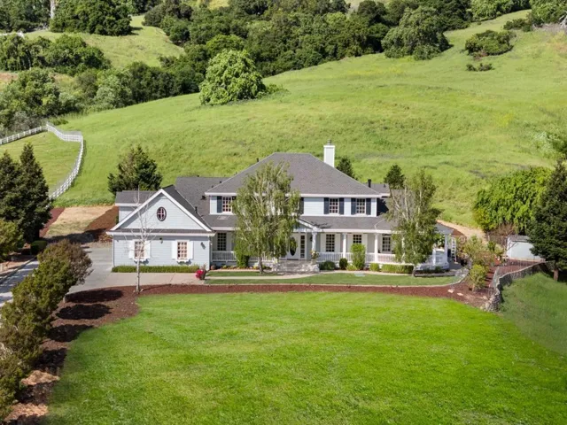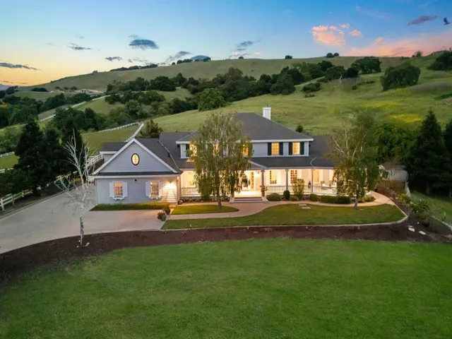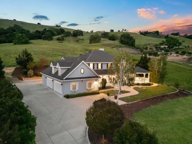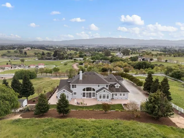 Experience timeless luxury and unmatched privacy at 9560 Via Del Oro, a stunning estate on 10 serene acres in the prestigious, gated Golden Heights Estates. Enjoy breathtaking sunsets and amazing valley and city views. This expansive property features a 5,390 sq ft main residence and a 960 sq ft guest house, offering 5 bedrooms and 5.5 bathrooms. Designed for both elegance and comfort, this gorgeous home boasts soaring ceilings, rich hardwood flooring, a chefs kitchen with granite slab countertops, custom cabinetry, high-end appliances, and travertine floors. The grand living room, formal dining area, and wood-paneled library with fireplace create the perfect setting for gatherings, while two primary suites, including one on the main level, provide private retreats. Outside, the 10-acre lot offers limitless possibilities, from a resort-style pool and vineyard to equestrian amenities or lush gardens. Host unforgettable gatherings with al-fresco dining surrounded by mature landscaping and amazing views. Additional features include an oversized four-car garage, an extended driveway and ample storage. Located minutes from Gilroy Premium Outlets, top wineries, Coyote Lake, and parks, with easy access to US-101 and the Gilroy Caltrain Station. A rare opportunity not to be missed!