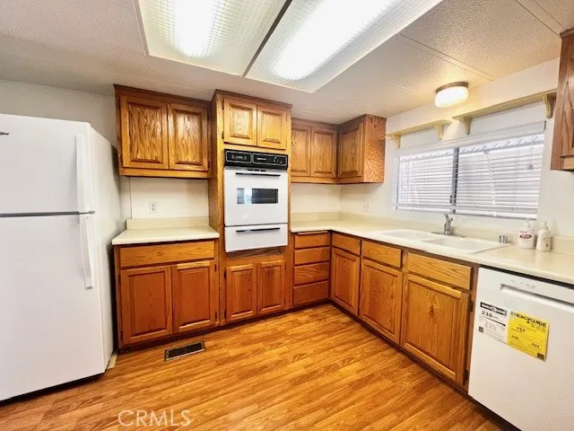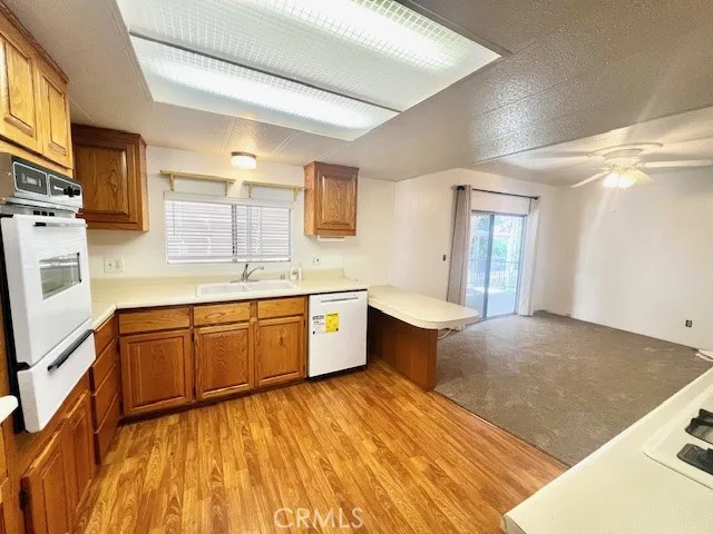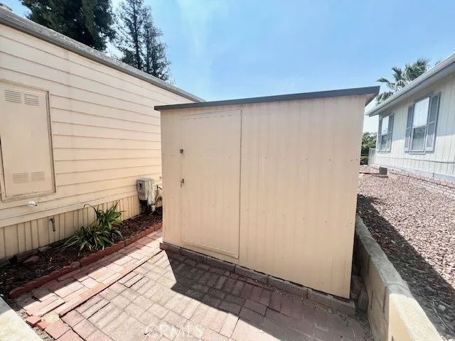 What a Deal!!! Welcome to Valencia Lea, Highland’s premier +55 community! This 2/2 1973 Fleetwood Suncrest 1440sqft home has great curb appeal, brick retaining walls and steps with mature palm and roses, an extra-large front porch with new outdoor carpet and a bonus brick seating area! This 2-bedroom, 2 bath home features new interior paint and new carpet. The large open living and dining areas have plenty of windows, letting in tons of natural light, and built-in dining room cabinets to display all your china. The open kitchen features upgraded solid oak cabinetry, new dishwasher, includes gas cook top and fridge! Just off the kitchen is a family room with slider to the front porch, perfect for informal living. The guest bedroom has a large closet and nearby guest bathroom features tub shower combo. The large primary bedroom has a huge walk-in closet and attached spacious bathroom with glass enclosed low-threshold shower. The full-length carport includes storage shed. Don’t delay in taking a tour!