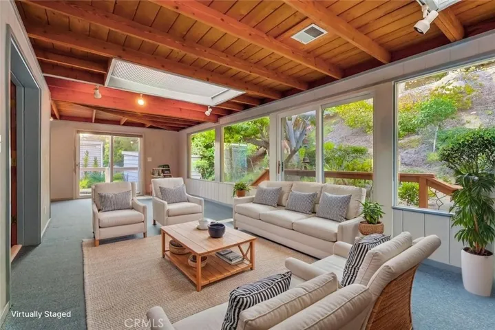 Fantastic opportunity to own in the highly desirable Palos Verdes Shores! 2-bedroom, 2-bathroom 2300+ sf home in the gated community of Palos Verdes Shores boasts Pacific Ocean, Catalina Island & greenbelt views! Easy care decks that provide easy access to the exterior & living rooms capture spectacular ocean views & unforgettable sunrises & sunsets. Cozy family room has a fireplace, built-in cabinetry & carpet. Kitchen offers plentiful storage, wood flooring, pots & pans drawers, dual sink basin & all appliances included: matching white dishwasher, gas stove, oven, microwave & stainless-steel refrigerator. Primary bedroom is massive & features a walk-in closet w/compartmentalized cabinetry & carpet. Ensuite primary bathroom equipped w/dual sinks, vanity, mirrors, walk-in shower & soaking tub. Huge, private den attached to primary bedroom captures spectacular peaceful tree views & has skylights, another walk-in closet, plus a sliding glass door to backyard deck. Guest bedroom has a spacious closet, carpet, & bathroom attached. Guest bathroom has a shower & tub combo. Individual laundry room comes with washer & dryer plus overhead cabinetry & utility closet. Dining room has vaulted ceilings, built-in cabinetry & carpet. Functional floorplan offers formal entry, living room, family room, dining room, den, plus low maintenance outdoor space! Blinds, bay window, carpeting, built-in cabinetry, ceiling fan, forced air heat & vaulted ceilings can be found throughout this one-of-a-kind home. Carport with stone pavers offers parking that fits 4 cars & a golf cart comfortably. Front patio & deck with awning captures coastal views & offers plentiful space for furniture, pets to run around & entertainment. Large shed features workshop w/shelving & plentiful storage space. Registration is $122 per year. NO PROPERTY TAXES! Home resides on a quiet, low traffic street near guest parking & 2 green belts. Home close to clubhouse, pool, gardens, dog park & hiking trails. Palos Verdes Shores is a gated community that offers activities for residents, on-site security, coastal hiking trails, private Golf Club, heated pool & hot tub, carwash, sauna, tennis & pickleball courts, dog parks, gardens, newly remodeled recreation center, fitness center, exercise floor, movie theater, billiards, office center, lounges, banquet hall, property manager & maintenance. Community near grocery stores, banks, medical centers, restaurants, resorts & freeways.