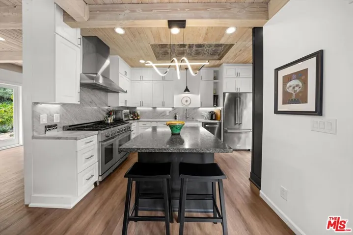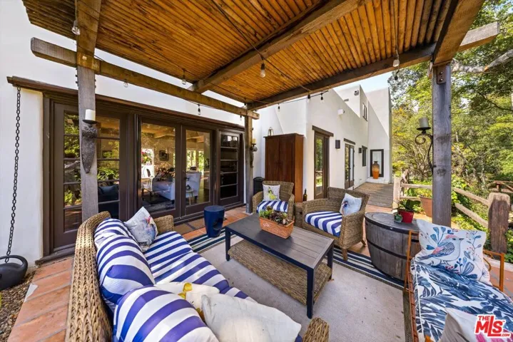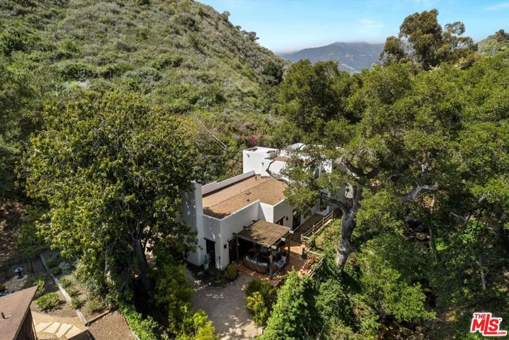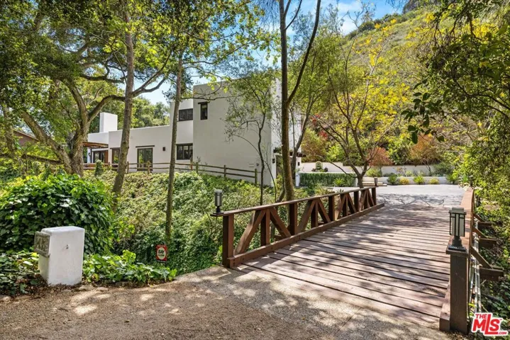 Tucked away in Santa Barbara’s verdant Sycamore Canyon, this enchanting Santa Fe-style retreat offers a rare blend of character, comfort, and natural beauty. Set on a lush, private one-acre lot, the 3-bedroom, 2.5-bath home of +/-2,345 square feet is surrounded by romantic greenery and mature landscaping, with a babbling creek adding to the tranquil ambiance. A private bridge leads you to the residence, setting the stage for a truly special arrival. Designed for effortless indoor/outdoor living, the property features multiple inviting patios and seating areas, and abundant off-street parking perfect for entertaining, relaxing, or simply soaking in the meditative environment. Every corner of the home offers unique touches that make it one-of-a-kind, from custom built-ins with a charming library ladder in the kitchen to a rustic wood fireplace mantle repurposed as a stunning bathroom countertop. The grounds are dotted with fruit trees, attracting a variety of birds and creating a haven for nature lovers. Whether you’re dining under the stars, curling up with a book by the fireplace, or hosting lively gatherings with friends and family, this soulful home offers a rare opportunity to live surrounded by beauty, privacy, and inspiration just minutes from beaches, Montecito’s Lower Village, and everything that downtown Santa Barbara has to offer.