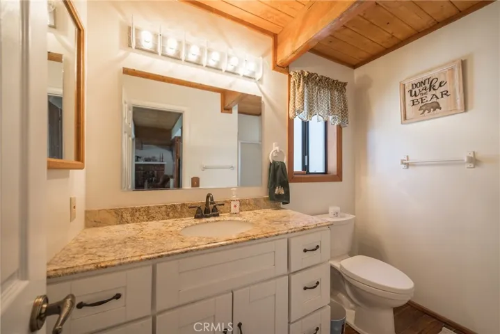 The King of the Corner, situated on a level knoll, best describes this Farm Style Home. Extra-large front and rear decks to enjoy the outdoors no matter what time it is. Two Dormers give extra character to the inside and out. Updated kitchen and bath counters, wood pegged flooring in kitchen and dining areas. The beautiful wood slab Breakfast Bar makes a great pass-through to the Dining Area, while French doors take you to the rear deck. The 7560 sq ft lot encompasses the entire corner and provides a complete drive-through with two gates. New forced-air unit. Perlin Beam ceiling in the living and dining area, a used brick fireplace with a wood-burning insert to keep the gas bill down. Downstairs bedroom has an armoire, 2 bright and cheerful bedrooms upstairs with window seat and the most interesting ceiling architecture, no square corners in these rooms, just vaulted and intregging. Fully furnished and ready to go. Storage container can stay with acceptble offer. Extra parking in the rear yard for RV or boat plus vehicles. You will apprceiate the pride of ownership this property displays.