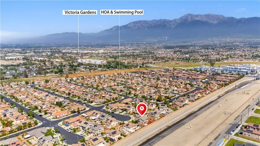 This exquisite, newly remodeled home is situated within a secure gated community in Rancho Cucamonga. Offering both luxury and convenience, the property boasts stunning mountain views, providing a serene backdrop.