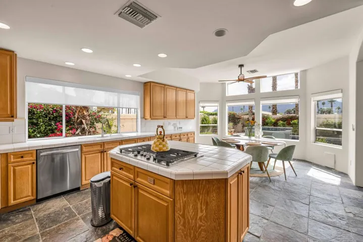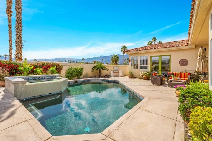 Now available for a long-term rental! Pet friendly! Inquire for Seasonal Rates November 2025 to April 2026. This is an excellent opportunity to enjoy this beautiful 3-bedroom, 3-bath custom La Quinta home. This home boasts an open floor plan with high ceilings, a kiva fireplace, and large windows that bring in wonderful natural light. The living room opens to the kitchen, which features stainless steel appliances, plenty of storage, and a kitchen island. Enjoy cooking on the 5-range gas stove overlooking the pool and dining area. The primary bedroom is on the opposite side of the two guest bedrooms and features high ceilings, French doors with access to the pool, double vanity, walk-in closet, sunken tub, and stand-alone shower. The two guest bedrooms are good size; one is ensuite. Enjoy al-fresco dining in the backyard overlooking the pool and Santa Rosa mountains. This home is great for entertaining, featuring a built-in BBQ, pool table, and outdoor entertainment space.
