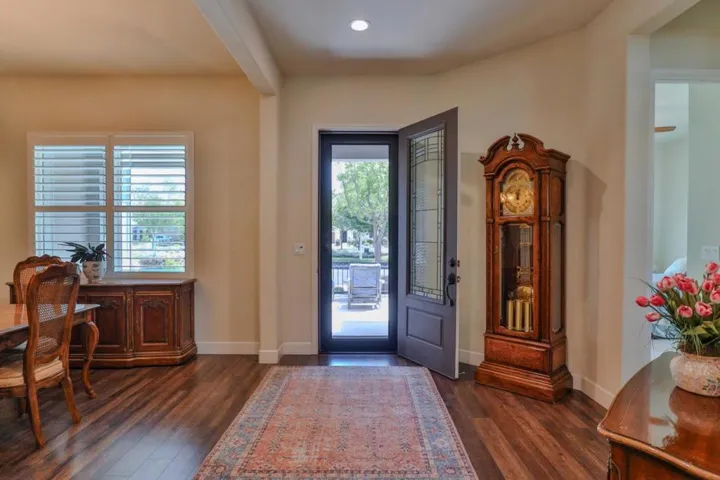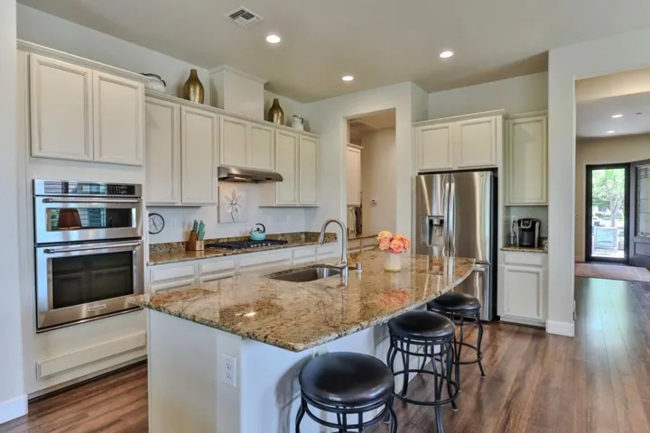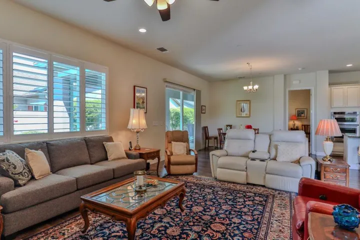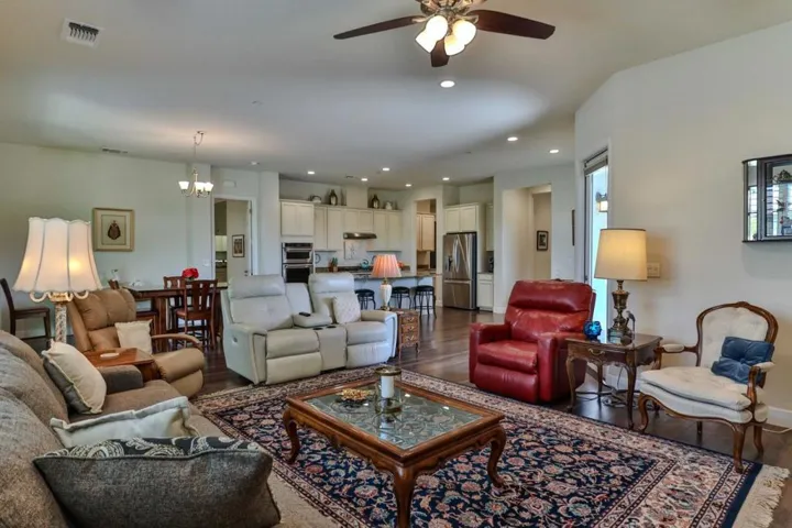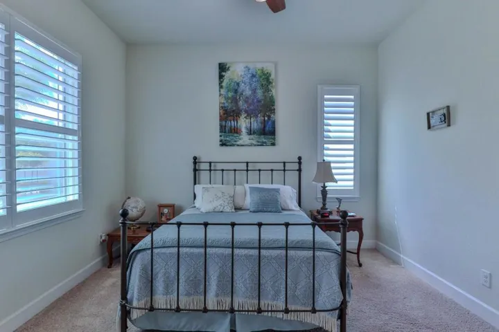 Discover refined living in the vibrant Woodbridge 55+ community! Enjoy an active lifestyle with access to Multiple NEW Pickleball Courts, a clubhouse, indoor/outdoor pools and spas, fitness center, library, billiards, tennis, putting green, and a stocked lake for catch and release fishing. Outdoor amphitheater for Summer concerts. With clubs and activities, this community fosters connection and engagement. This stunning 8 year old, 2,509 sqft corner lot home offers 3 spacious bedrooms, 2 modern bathrooms, and a versatile den (“snore room”), ideally situated across from Liberty Parks scenic walking trails. Owned SOLAR Home!! The gourmet kitchen boasts ample cabinetry and flows seamlessly into an open concept living area, perfect for entertaining. Retreat to the expansive master suite with a luxurious en suite featuring a sunken tub. Additional highlights include formal and casual dining spaces, generously sized guest bedrooms, a low-maintenance backyard oasis, and paid Solar Panels. Don’t miss this exceptional home in an unparalleled location, schedule your tour today!