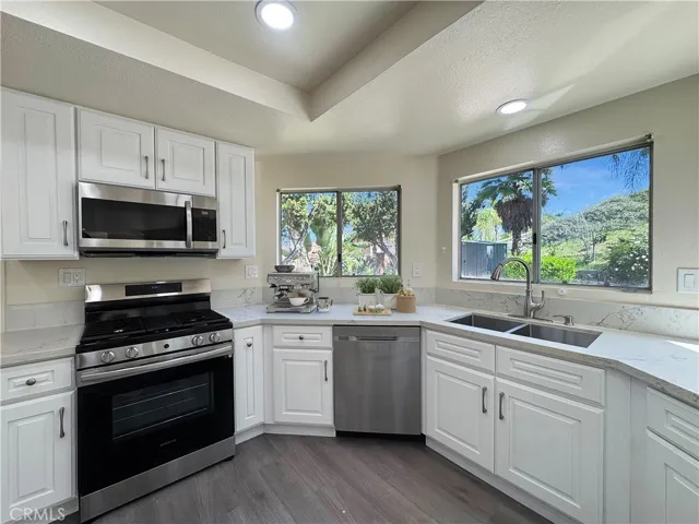 Welcome to this beautifully updated 4-bedroom, 3-bathroom home nestled in an exclusive and private neighborhood surrounded by rolling hills, fine dining, and premier shopping. Set on an oversized lot of over 13,000 square feet, this property offers space, style, and serenity in one of the most desirable areas. A long, extended driveway provides ample parking and leads to a spacious 3-car garage. Step inside to a grand foyer with an elegant staircase, setting the tone for the home’s inviting and open layout. The large living and dining rooms are perfect for entertaining, while the oversized family room, complete with a cozy fireplace, flows seamlessly into the recently remodeled kitchen—featuring modern finishes and ample storage. All three bathrooms have been tastefully renovated, and each of the four bedrooms offers generous space and large closets, ensuring comfort for the whole family. The upgraded flooring throughout the home adds a touch of sophistication and easy maintenance. The private backyard is a tranquil retreat, surrounded by mature trees and lush landscaping that provide natural shade and a peaceful ambiance. Whether hosting guests or enjoying quiet evenings, this outdoor space is a true highlight. Additional upgrades include a newer HVAC system, making this home move-in ready and energy-efficient. Homes in this unique neighborhood sit at varying elevations, creating a custom, upscale feel throughout the community. Conveniently located near major freeways, yet tucked away in a serene setting, this is a rare opportunity you won’t want to miss.