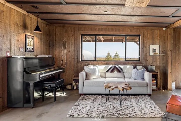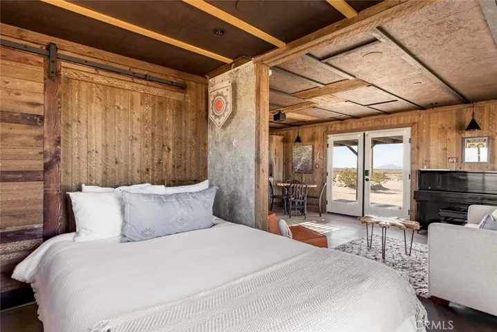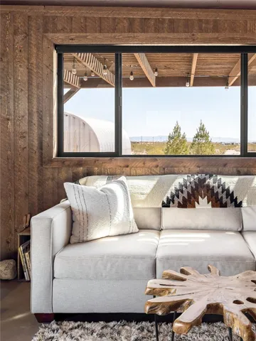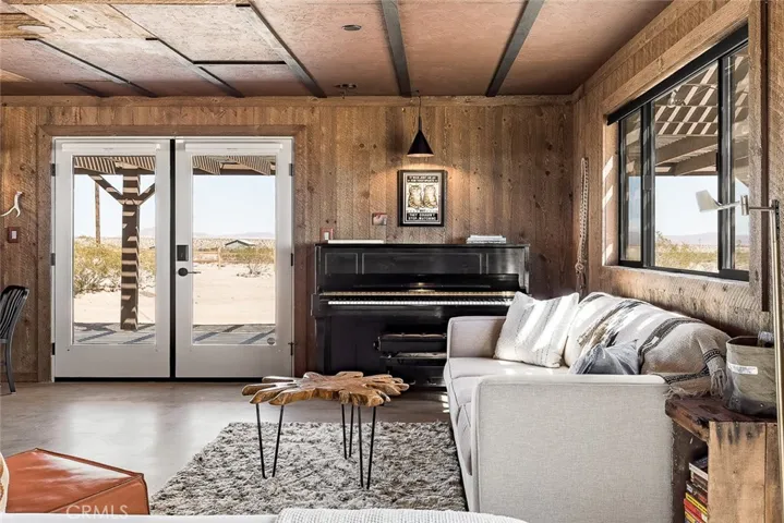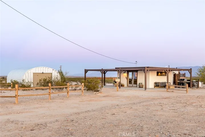 Welcome to Blue Shadows, a bespoke 1957 homesteader cabin turned fully permitted single family home & quonset hut on 5 scenic acres in Joshua Tree. Why spend weekends battling crowds and traffic when you could be unwinding by the fire pit under a canopy of stars with sweeping views of Joshua Tree National Park as your backdrop? Don’t let the compact footprint fool you, this turnkey home packs a punch with custom finishes throughout, including polished concrete floors, Energy Star certified Milgard windows and French doors with black-out shades, custom woodwork and cabinetry, and a newer mini split for year-round ultra-efficient climate control. Surrounded by 734 square feet of shaded patio, you’ll be inspired to spend more quality time outside taking in the sunrise, reading a book, sneaking in a quick nap, basking in the desert air after a rain, or catching up with friends over sunset beverages. Once the sky has flooded with stars head over to the new 6-person spa for constellation mapping, deep conversations, or just a peaceful moment of jetted hot tub zen. A 750 sq ft Quonset Hut built in 2021 makes the perfect accessory flex space to use as a studio, workshop, or garage – or convert it to a legal guest house/ADU for 1,238 sq ft of living space. Remote enough to genuinely feel like you’ve escaped the chaos of the world, yet you’re still connected with city water, SCE power, high speed internet, leased propane, and weekly trash service. Lovingly adored as a special weekend getaway and successful short term rental, this low-maintenance turnkey escape could be the perfect little dose of magic your life needs.