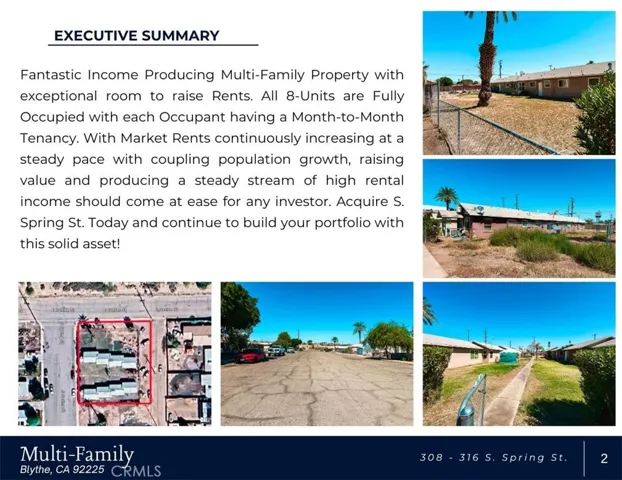 Fantastic Income Producing Multi-Family Property with exceptional room to raise Rents! All 8-Units are Fully Occupied with each Occupant having a Month-to-Month Tenancy. With Market Rents continuously increasing at a steady pace, raising value and producing a steady stream of high rental income should come at ease for any investor. Acquire S. Spring St. Today and continue to build your portfolio with this solid asset!