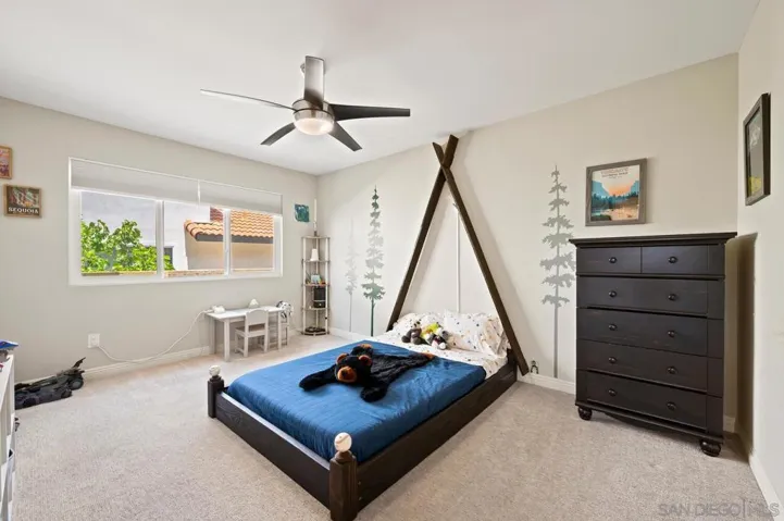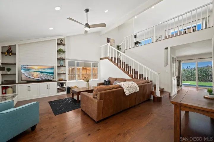 This spacious 4-bedroom, 3-bath home with RV parking on a cul-de-sac offers comfort, style, and functionality throughout. The inviting living room features a soaring ceiling and a warm fireplace, ideal for relaxing evenings. The heart of the home is the beautifully appointed kitchen, boasting abundant counter space, a walk-in pantry, and a seamless flow into the dining room—perfect for entertaining or family gatherings. Retreat to the luxurious primary suite with a walk-in closet and a spa-like bathroom featuring a sunken jetted tub for ultimate relaxation. Step out onto the expansive second-floor deck and take in stunning views—ideal for morning coffee or evening sunsets. Three additional bedrooms provide ample space for family, guests, or a home office. The backyard is your personal oasis, featuring low-maintenance turf, a built-in firepit, and a covered patio with a misting system to keep you cool on warm days. This dream home combines comfort, practicality, and outdoor living at its best! Close to Mission Bay and Fiesta Island parks, shopping, dining, and minutes away from the 5 freeway. Don’t miss the opportunity to make it yours!