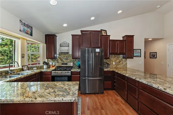 Discover your dream home in the highly sought-after Pinewood Estates, where this charming 3-bedroom, 2-bathroom residence awaits. With 1,816 square feet, this inviting property features a spacious open-concept great room with a stunning stone wood-burning fireplace and vaulted ceilings that create an airy and welcoming atmosphere. Great walk in closet in the main bedroom for her and a finished garage for him! Enjoy the convenience of newer appliances and a fully fenced well manicured yard with fruit trees, in this serene neighborhood. With a two-car garage adding to its appeal, this residence is perfectly suited for those seeking a full-time haven amidst natural beauty. Seize the opportunity to make this exceptional property your forever home today!