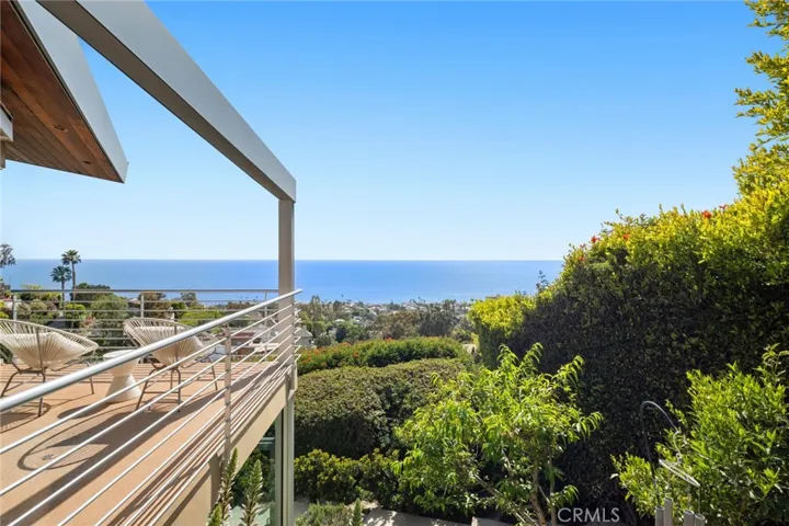 Welcome to a Mark Singer-designed sanctuary where modern sophistication meets coastal serenity. Perched in the highly sought-after enclave of Woods Cove, this one-of-a-kind 4-bedroom, 4,400 SF architectural marvel offers sweeping, unobstructed views of the Pacific Ocean, Catalina Island, and the pristine coastline of Laguna Beach. From the moment you step through the front door, you’re enveloped in floor-to-ceiling ocean vistas, soft coastal breezes, and refined finishes that evoke the indulgence of a five-star resort. Thoughtfully upgraded with newly installed and fully owned Tesla solar panels, the home offers cutting-edge energy efficiency without compromising luxury. The main level hosts a breathtaking primary suite with expansive walls of glass framing the endless seascape and twinkling city lights. The spa-inspired ensuite bath features heated floors, vaulted ceilings, and timeless elegance. A true chef’s kitchen awaits with quartzite countertops and backsplash, a large central island, and top-tier appliances including a Hestan range, Liebherr refrigerator, Cove dishwasher, and built-in two-drawer refrigerator. A spacious walk-in pantry adds convenience and style. Seamless indoor-outdoor living is at the heart of this home, with a tranquil water feature leading to a large entertaining deck—ideal for sunset dinners or lively gatherings under the stars. The mid-level offers a second living area for entertaining, complete with a built-in projector, expansive ocean-facing deck, and a climate-controlled 800-bottle wine cellar—perfect for movie nights or intimate tastings. Each secondary bedroom suite is a private retreat, featuring its own terrace, entrance, and coastal views. One room also doubles as a creative studio or home office. A distinctive staircase adds architectural flair, capturing sunlight and ocean sparkle by day and golden sunsets by night. Practical luxury continues with a generous three-car garage and a full driveway, ideal for guests and car collectors. And with fully owned Tesla solar, you’ll enjoy sustainable living with reduced energy costs—without sacrificing comfort. This is more than a home; it’s a lifestyle—a rare opportunity to live above the waves in timeless style, just moments from world-class beaches, restaurants, boutique shopping, and the vibrant Laguna Beach art scene.