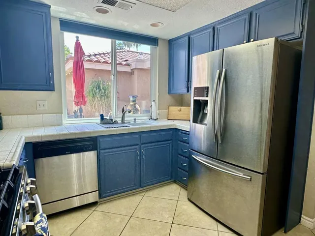 Welcome to this beautifully maintained 2-bedroom, 2-bath (recently remodeled) home featuring a private entry courtyard and a spacious, fenced extended patio–perfect for outdoor relaxation and entertaining. Enjoy stunning lake and mountain views from the living room, dining area, and primary suite, each with access to the patio through expansive sliding glass doors that fill the space with natural light.The open-concept living and dining area boasts vaulted ceilings, elegant tile flooring, and a stylish chandelier, creating a warm and inviting ambiance. The updated kitchen offers a pop of color with striking blue cabinetry, tile countertops, and stainless steel appliances–ideal for any home chef.The spacious primary suite provides patio access and serene views of the landscaped grounds, while the second bedroom and bath offer comfort and flexibility for guests. This home blends comfort, style, and a prime location near scenic outdoor spaces, right next to the community pool–perfect for a vacation escape.