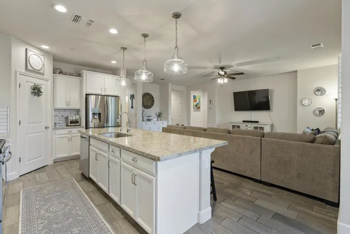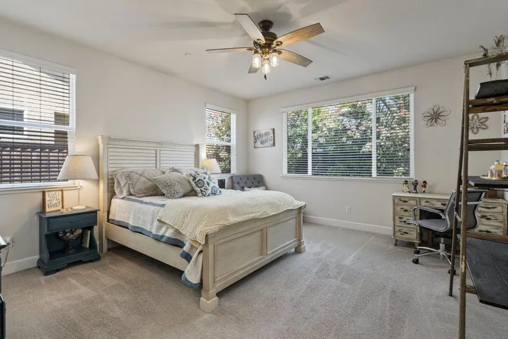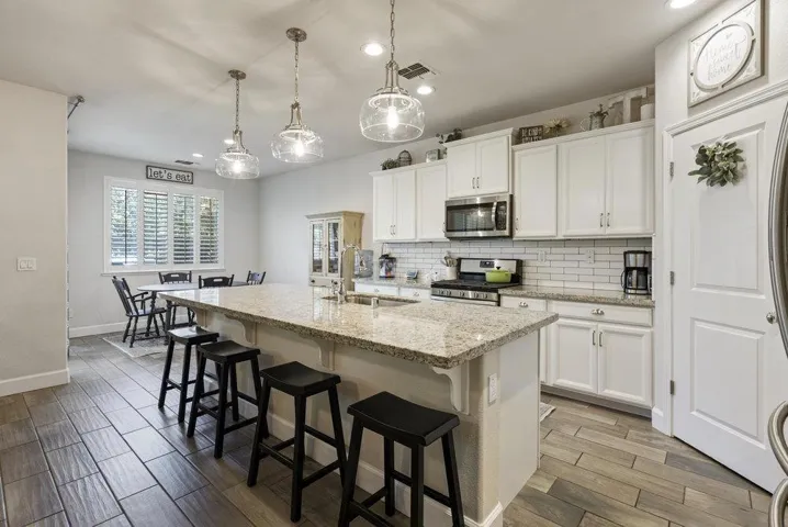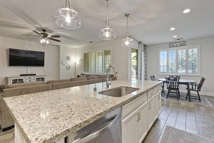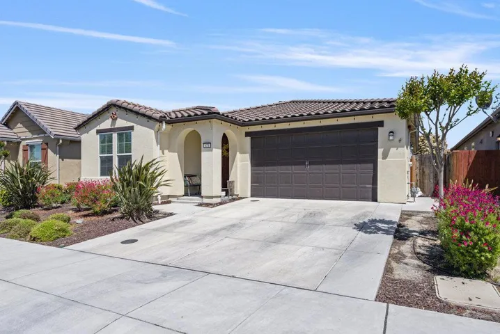 SOLAR INCLUDED! This charming home, adorned with splendid decor, is located in the city of Hollister. Offering 1,926 square feet of comfortable living space, it features three bedrooms, two full bathrooms, and a half bath conveniently situated across from the laundry room. The kitchen stands out as a focal point, equipped with modern amenities such as granite countertops, a gas oven range, microwave, dishwasher, and an in-kitchen pantry for added convenience. The open layout, combining the kitchen and family room, is ideal for entertaining, complemented by a large island and elegant pendant lights as modern additions and also upgraded with beautiful shutters. This home showcases tile flooring throughout, with carpeting in the bedrooms. Step inside the spacious laundry room, with room for storage and is conveniently located near the garage and half bath for easy access. Take some time to enjoy & relax in the backyard and patio. Wonderfully situated on a 5,061 square foot lot in the Cerrato Community. This home offers proximity to Hwy 25 for easy commuting, as well as walking distance to schools and shopping.