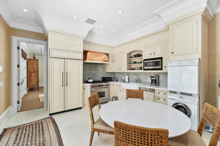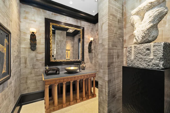 This is a true Trophy Estate located within Mission Ranch, one of Rancho Mirage’s most exclusive communities off Clancy Lane. This exquisite property has breathtaking amenities. Stunning landscaped estate begins with a circular drive featuring inlaid granite accents. Lovely bronze adorned sculpture fountain graces the front lawns. Leaded & beveled double glass entry doors surrounded by columns of Sandstone give hint to the beauty within. Jewel-like tiles grace the entry hall with floral design. Walls of picture windows and breathtaking panoramic views of the Mountains greet you in the formal living room. This room features rose marble walls and a Soapstone fireplace with a leather wall surround. Custom carpets throughout, Sandstone floors, Alabaster wall sconces, custom lighting, Chihuly style Glass Chandeliers, custom cabinets, hand – painted tiles, & much more add to the grandeur of this property. The large gourmet chef’s kitchen and separate butler’s pantry is ideal for entertaining family and guests alike. The home also boasts its own temperature-controlled wine and beverage room. There are two huge primary bedroom en-suites each with its own stunning full baths and large closet only found in luxury estates. Each of the primary bedrooms is separated by their own living area. There is a separate office and library and let’s not forget about your own personal gym. External to the home is a separate 2-bedroom en-suites with its own fully equipped kitchen. The gardens boast an outdoor kitchen, many vignettes including an English Rose Garden, white rose vine covered arbors, fruit trees, and a large separate water feature. The stunning pool and jacuzzi spa have cascading urn fountains and majestic water spouts. Behind the pool is an elevated deck with an outdoor fireplace and seating area where you enjoy the perfect desert evenings. The Estate consists of 2 APN#’s with approximately 1.53 acre. The Main house is approximately 8213 sq. ft. and the Guest House is approximately 1203 sq. ft. Minutes from shopping, dining, entertainment, El Paseo, and Eisenhower Medical Center.