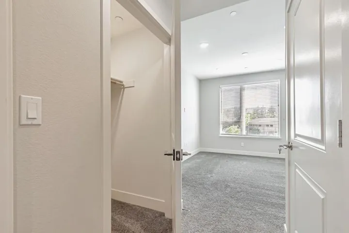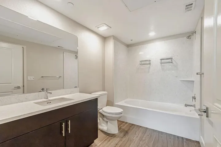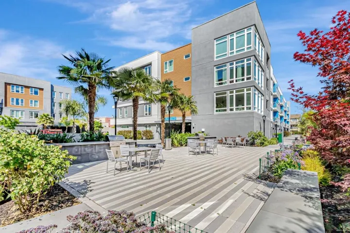 Great location: near parks, shopping, Kaiser, freeways, schools, Costco, DT SJ, biking ,trails, community pools, spa, gym +much MORE. Safe, secure entry and garage, Amazing value 1 bedroom PLUS office/ ( optional guest accommodations bed).Freshly painted throughout, It offers unique modern features, parking, great location and amazing amenities. Luxury vinyl plank flooring, recess lighting, brand new interior paint, Quartz counter tops in kitchen and bathroom, Full backsplash, GE Stainless steel appliances including 30″ free standing gas convection oven, dishwasher, over the range, microwave oven with range sensing technology, and counter depth side by side refrigerator. Separate dining area. Master Suite with flat screen pre-wire and HDMI receptacle.2 walk in closets. Balcony with a view of the mountains. Modern Moen fixtures. Two panel square interior doors with upgraded contemporary hardware. Stackable washer and dryer(in unit).Central heat and air conditioning. Amenities include lap swimming pool, gym and modern clubhouse. Great location! Conveniently located near Highway 85, Highway 101, Caltrain station, grocery stores, retail, parks and hospital. Guest parking available.1 Car garage parking. It is a high value modestly priced home!