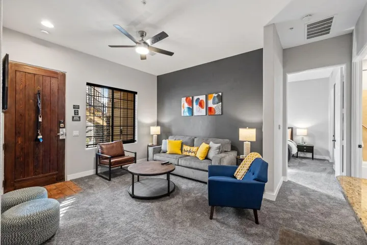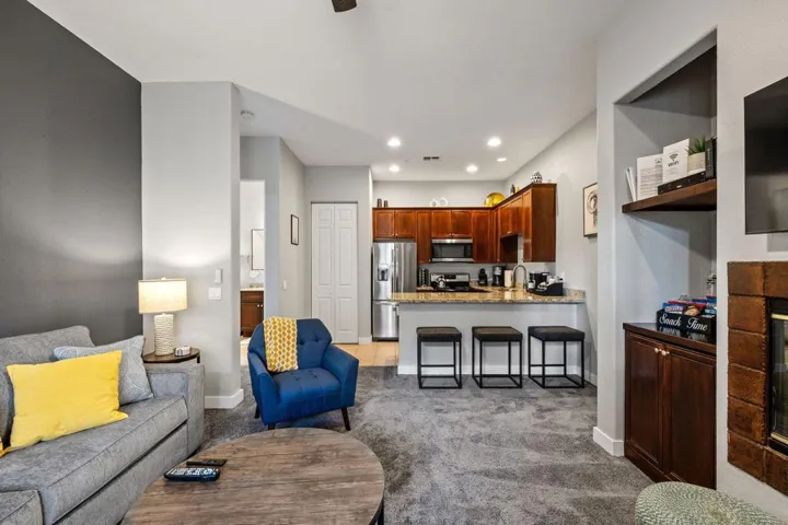 This ground floor resort style unit is located just steps away from the pool & spa of the highly desirable SHORT TERM RENTAL ALLOWABLE Casitas Las Rosas community in La Quinta. This turnkey furnished & immaculately updated 1-bedroom, 1-bath casita delivers the refined ease of a personal retreat combined with the possibilities of income-generating revenue. Encompassing 682 square feet of stylish interior living space, this unit has been thoughtfully upgraded with modern furnishings & a fresh, contemporary palette–evoking comfort without compromising sophistication. Upon entry, guests are welcomed by a harmonious blend of upgraded finishes & warm design elements. The open-concept living room is bright & airy. Anchored by a cozy gas fireplace, the main living area transitions seamlessly into the breakfast bar & kitchen, creating a fluid environment ideal for entertaining or unwinding in solitude. The kitchen, with granite countertops, has ample cabinetry & is well-suited for both extended stays & casual weekend escapes. In-unit laundry adds everyday convenience without sacrificing space or style. Residents benefit from lower monthly HOA dues, access to multiple pools & spas, & a well-maintained community atmosphere.Ideally located just a short walk from Old Town La Quinta, you’ll enjoy charming boutique shops, excellent restaurants, & popular seasonal events like the Sunday Farmers Market & Art on Main Street. The area also offers close proximity to hiking & biking trails, top-tier golf courses, tennis & pickleball facilities, & renowned events such as the Coachella Music Festival & the BNP Paribas Open at Indian Wells.Whether you’re an investor searching for a seamless acquisition or a discerning buyer desiring a lock-&-leave getaway with charm & character, this casita is poised to exceed expectations. Rental history available upon request. Shown by appointment.
