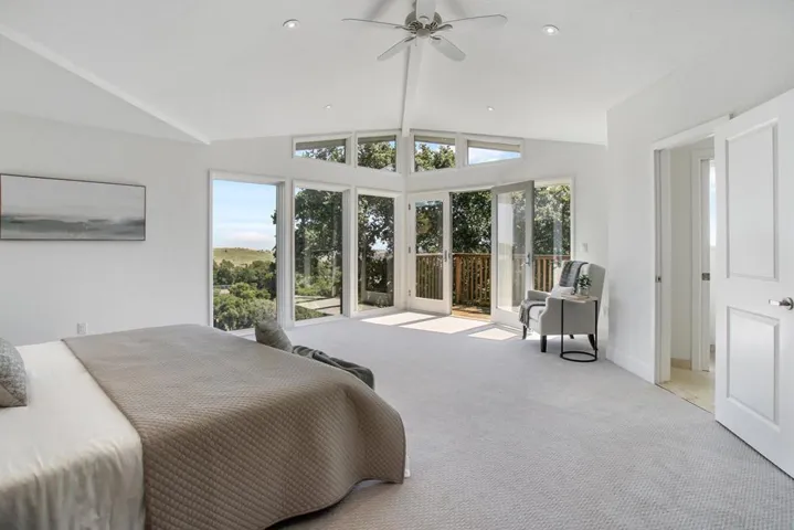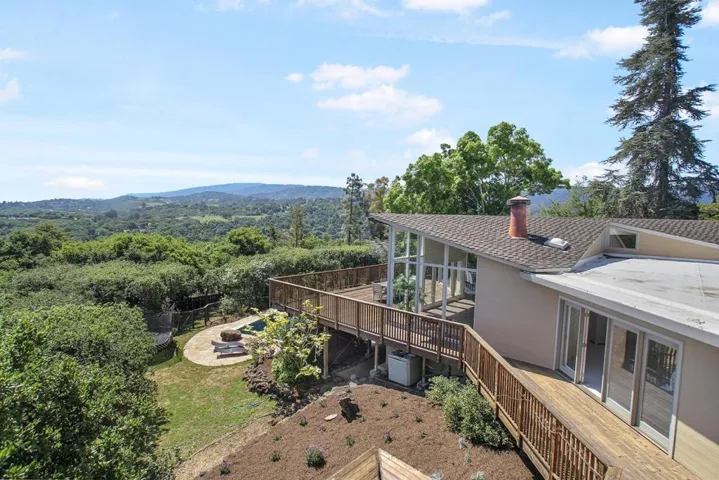 You wake up one morning on the deck of 415 Golden Oak Drive, coffee in hand, gazing at a view that makes time stand still. From this elevated perch in central Portola Valley, the South Bay unfolds rolling hills, morning mist, and the quiet promise of a perfect day. This beautifully updated 4-bedroom, 3.5-bath home offers ~3,700 sq. ft. of refined living space, blending clean architectural lines, natural light, and sweeping sightlines. Set on just under two acres with lawn, pool, mature trees, and expansive decks the property is both functional and breathtaking. Inside, vaulted ceilings and large windows frame the views. The open living and dining areas flow into a thoughtfully designed kitchen with high-end appliances, custom cabinetry, and a spacious island ideal for entertaining or quiet mornings. The ~600 sq. ft. primary suite is a private retreat with a spa-like bath, walk-in closet, and a balcony perfect for stargazing or late-night talks. A separate bonus room with full bath offers flexible space for guests, work, or play. Located in the heart of Portola Valley, minutes from top-rated schools, scenic trails, and local shops, this isn’t just a home its a vantage point. A place where space, calm, and style come together. Come for the view. Stay for everything else.