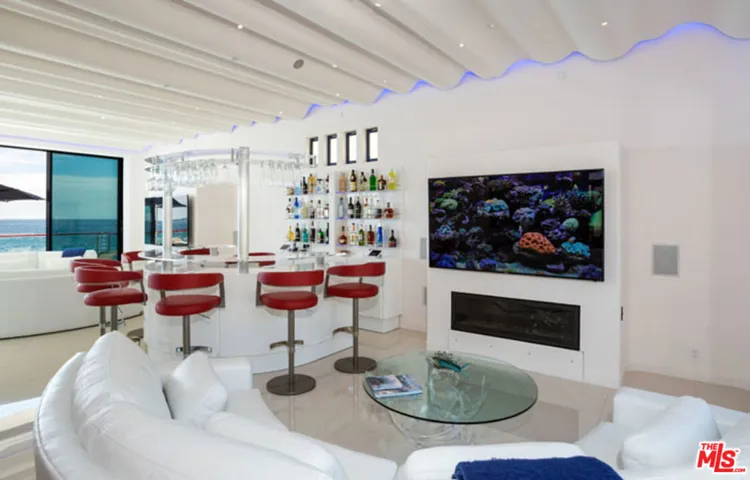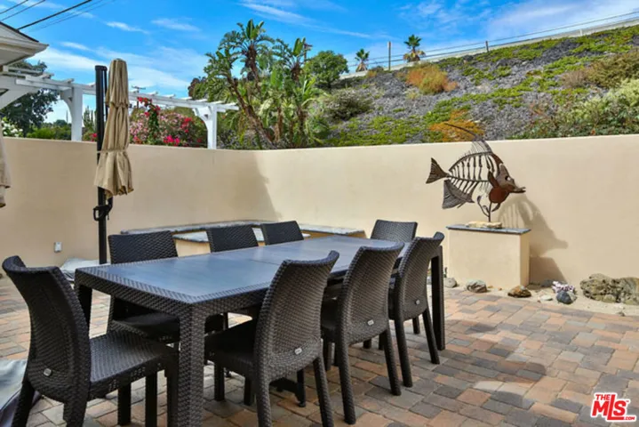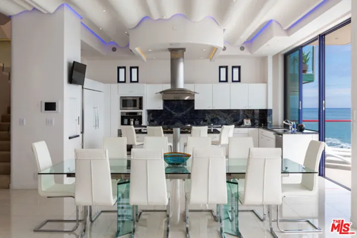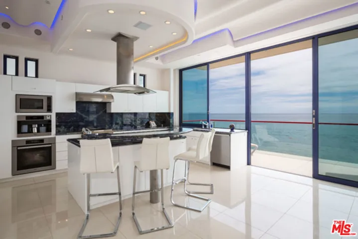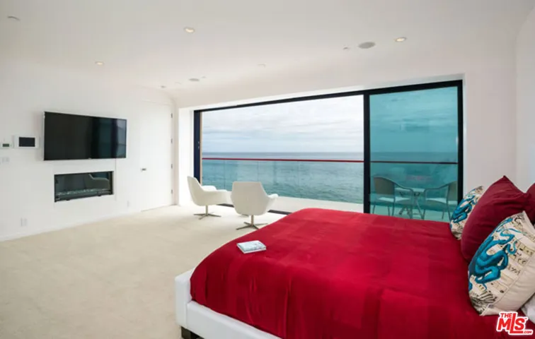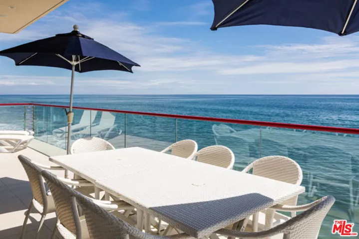 Here is absolute luxury, privacy, and hospitality in an idyllic oceanfront setting with nonstop sunrise to sunset views and every amenity for sophisticated living and entertaining. A stunning achievement by architect Norman Jarrett, well known as the creator of the Dolphin House featured on NBC Extra’s “Mansions and Millionaires,” this sleek contemporary is all about open space, lavish light, and seamless indoor-outdoor living. The SeaGlass House is perfectly situated in the gated and beautifully landscaped private community of Malibu Cove Colony, convenient to the luxurious dining and boutiques of central Malibu as well as the exquisite sand beaches along this impeccable shore. Complete with gorgeous Italian leather furniture and original artwork, every room is designed for a lifestyle of majestic comfort. A full-length barrel-vault skylight provides natural lighting by day and star gazing at night, while wide Fleetwood stacking glass doors open onto full-width beachfront decks with ample room for al fresco dining and relaxation. On the main floor, the grand living/dining/bar/media room is complete with two fireplaces, a fully equipped and stocked bar, and a dining table for 10, plus ocean and island views from beneath a dramatic wave-form illuminated ceiling. The adjoining gourmet kitchen has stunning granite countertops, superb quality appliances, a custom Blue Star indoor grill, bar seating, fully stocked crockery, cutlery and glassware for 18, plus a dumbwaiter to the kitchenette centrally located in the second-floor atrium. An elevator supplements the central staircase for access to the upper floor, where there are four spacious en-suite bedrooms with top-of-the-line Tempur-Pedic mattresses, large closets, mechanized Silhouette shades, and luxurious baths with rare onyx and granite countertops and marble floors. Two oceanfront bedrooms each have a wall of glass with Fleetwood doors opening onto a full-width lounging deck. At the front of the house, a private courtyard features an outdoor kitchen with Lynx appliances, an outdoor TV, a dining table, and a fire pit. A private stairway at the side of the house provides direct beach access. Among this outstanding estate’s many additional features: integrated Crestron smart-home systems, radiant floor heating, air conditioning, motorized and remote-controlled sun shades, intercom, fire sprinklers, standby generator, security, exterior cameras, and a two-car garage. This is a beachfront masterpiece designed for year-round refined luxury in exquisite surroundings. Listing price of $45,900.00 to be for 1 year term leases. Summer 2025 rate to be; June$52,900.00, July & August $76,900.00, September; $52,900.00. All other months to be $47,900.00.