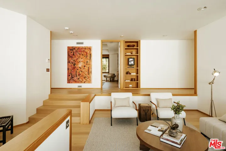 Set on a coveted 60 ft wide, 8,715 sqft lot in Santa Monica’s prized Gillette Regent Square, just north of Montana Avenue, 622 24th Street is a rare Bauhaus gem offering 8,350 sqft of refined living. Designed by world-renowned architect Irving Tobocman–his only residential project in California–this striking contemporary home exemplifies proportion, materiality, and natural light at its finest. A harmonious blend of form and function, the residence features full-slab Italian travertine floors, custom-crafted oak millwork, and floor-to-ceiling glass, reflecting Tobocman’s commitment to continuity, spatial harmony and timeless design. The main level opens through a gracious formal foyer into a voluminous living room and a defined dining space, framed by floor-to-ceiling glass windows which blend the indoors with the natural landscape. A sleek chef’s kitchen with dual Sub-Zero refrigerators, Gaggenau ovens, and a Wolf range anchors the home, complete with an oversized island, breakfast nook, and walk-in pantry. The adjacent family room is ideal for entertaining, featuring a travertine bar, built-in Sonos system, and sliding walls of glass that open to a lush, newly renovated backyard with a saltwater pool, spa, and baja. A bedroom, two powder rooms, and an attached two-car garage complete the main floor. A dramatic double-height corridor with architectural glass block leads upstairs to four spacious bedrooms all with en-suite baths, oversized walk-in closets, and custom built-ins surrounding a cozy, sunken den. The primary suite is a true retreat with dual baths, a jacuzzi-jet soaking tub, massive walk-in closet, and a 35 ft private terrace overlooking the pool. Descending downstairs, the lower level boasts a sprawling recreation room perfect for entertaining guests, children to play and health and wellness programming. A new custom kitchenette, private office, laundry room, 371 sqft of storage, and a full guest suite with private living room, bedroom, and full bath. Located just minutes from the Brentwood Country Mart, Franklin Elementary, and the boutiques and cafes of Montana Avenue, 622 24th St is an irreplicable one-of-a-kind architectural statement, an art collector’s dream, and a true sanctuary for modern family life.