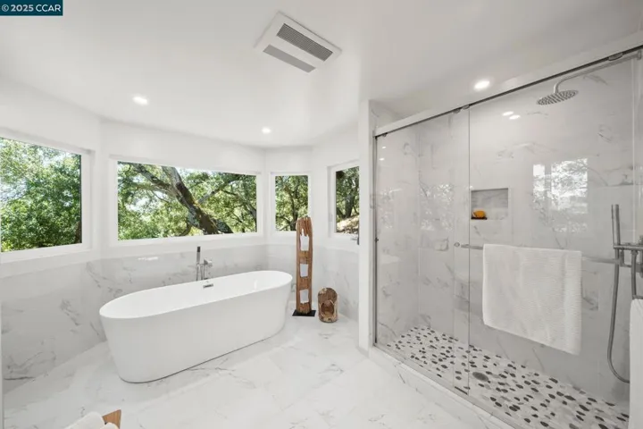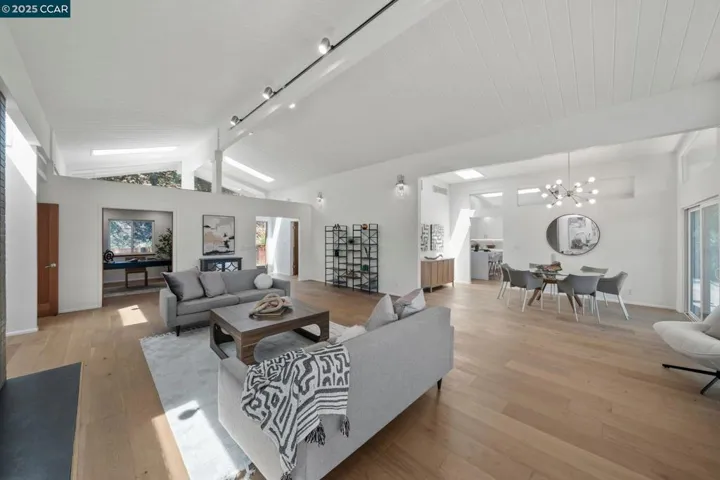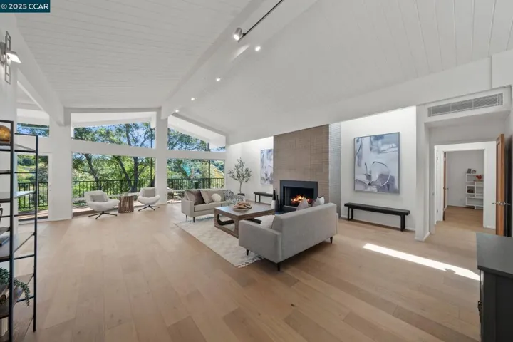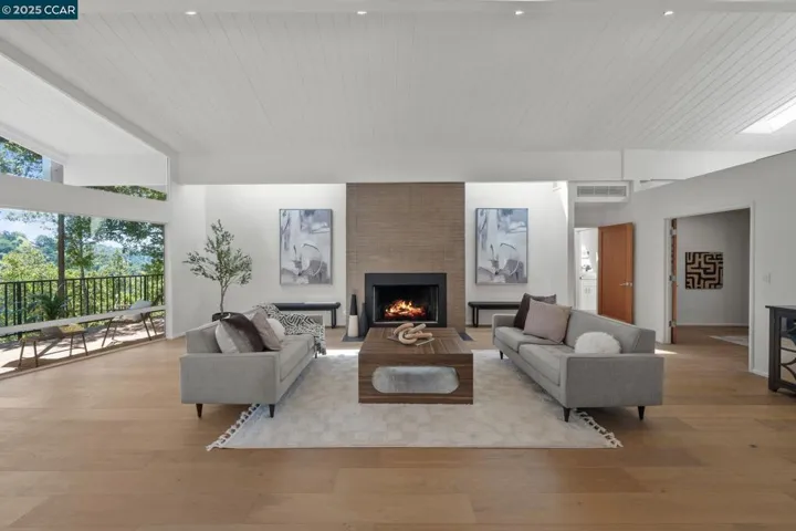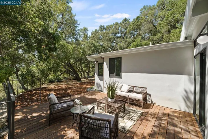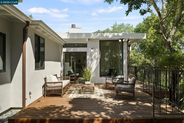 Use 119 Melody for correct directions!! Fully remodeled single-level mid-century modern masterpiece nestled in the serene foothills of Orinda. Enjoy the elite k-12 public school system that Orinda offers. Sweeping views of the hills and valleys, the sounds of nature, and the beauty of the local flora and fauna allow for an easy path to peace in this unique slice of paradise. Indoor/outdoor mid-century living and entertaining at its best! Floor to ceiling windows and 9 skylights fill the living space with warm natural light. The nearly 4 acre lot offers the owner unparalleled privacy and the opportunity for expansion; plant an orchard or vineyard, or extend the deck and add a pool. (ADU plans provided!) The chef’s kitchen is fully equipped with stainless high end appliances including a 48″ Sub Zero refrigerator/freezer, a 6-burner professional Wolf range, and quartz countertops. Just 15 feet from the attached garage to the kitchen counter. The remodel left nothing in question; low maintenance hardscaping, new roof and gutters, walls, windows and sliding doors, appliances, Phylrich and Gröhe fixtures, decking, siding, kitchen, bathrooms with programmable radiant heated floors, flooring, gas lines, water lines, and a 7-zone HVAC mini-split system.