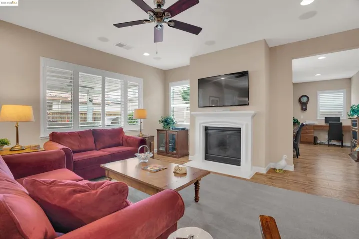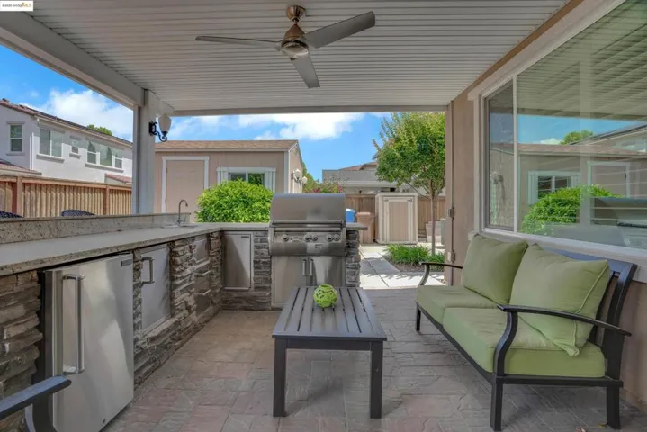 Discover the perfect combination of style, comfort, and functionality in this spacious 4-bedroom, 2.5-bathroom single-story home nestled on a desirable corner lot. Located just a short walk from local elementary schools and scenic parks, this home offers a lifestyle of ease and community connection. Inside, you’ll find a bright and open floor plan featuring neutral tones, high ceilings, and abundant natural light. The expansive living and dining areas seamlessly flow into a large, well-appointed kitchen—perfect for both everyday living and entertaining. A generously sized private office provides an ideal space for remote work, study, or a quiet retreat. Each bedroom is spacious and thoughtfully placed for privacy, while the primary suite offers a peaceful escape with a luxurious ensuite bathroom and ample closet space. Step outside to your personal backyard oasis featuring a custom outdoor kitchen, a large covered patio, and plenty of room to relax or entertain guests. Whether you’re hosting a summer barbecue or enjoying a quiet evening outdoors, this space has it all. Energy efficiency is covered with owned solar panels, keeping utility costs low while promoting sustainability. With its prime location, smart layout, and impressive features, this home truly checks all the bo