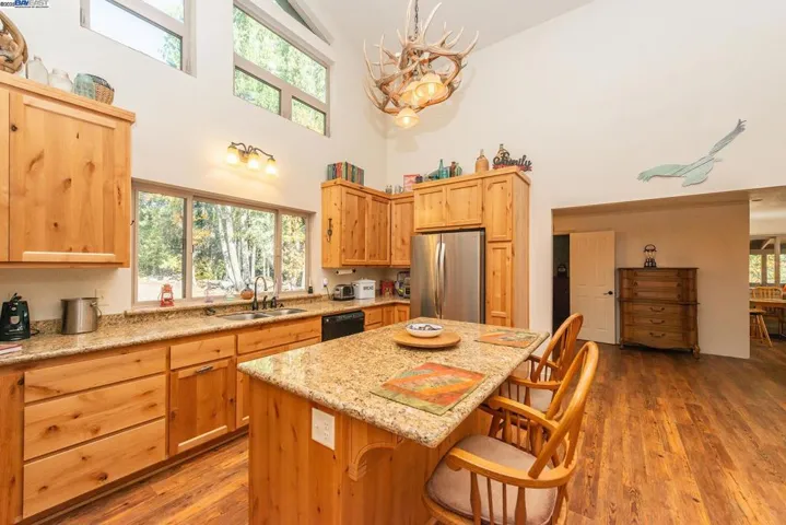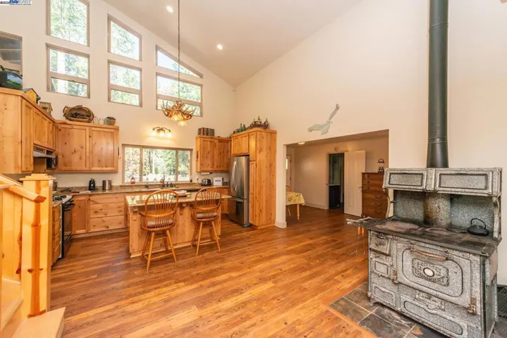 Creek Side Retreat, nestled in the tall trees with the sounds of the year round creek below the home that offers a sweet echo throughout the canyon. The custom built home that is approx 2,812 sf with 4 bedrooms & 3 full bathrooms, hand crafted pine stair way leading to the large loft/ game room with slider to deck to gaze at the amazing views of the Trinity Alps and across the canyon. Kitchen features custom granite slab counter tops, custom cabinets, vaulted ceilings, walk in pantry & leads to the laundry room. The living room has slider that leads to the wrap around deck, the den also has slider that leads the side deck. The floor plan offers so many options for variations of use for rooms. The garage is extra large consisting on 1,080 sf , with automatic door, sink, work bench & concrete flooring. A side yard that has a chicken coop or can be a dog run. Relaxing or entertaining on the large back deck listening to the sounds of the creek is how every day should end. Come and see this charmer!
