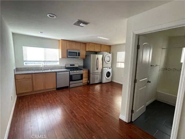 Experience space in this extra-large, approximately 1,700 SF front house, which was completely remodeled in 2017 (except for the frame). It offers central air & heat, a brand-new kitchen with full appliances (refrigerator, gas stove, dishwasher, washer & dryer), and three (3) bedrooms and three (3) bathrooms. The front yard offers ample parking for up to 4 cars. Currently occupied by a solid tenant, ensuring immediate income.
