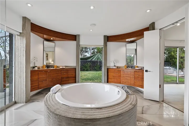 Stunning Resorted mid-century Masterpiece with head-on jetliner City Views. Located on a private promontory off Woodrow Wilson Dr. this Ultra Private estate of close to one acre is with a round, sunk-in living room opening to the explosive city views, pool and expansive entertaining patios and lawns. Enormous living spaces and master bedroom all opening to views and expansive lawns & pool areas. Perfectly situated at the end of private road and perfect for entertainment & shopping of Sunset Strip, Beverly Hills.