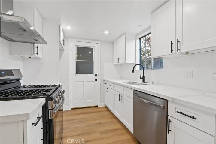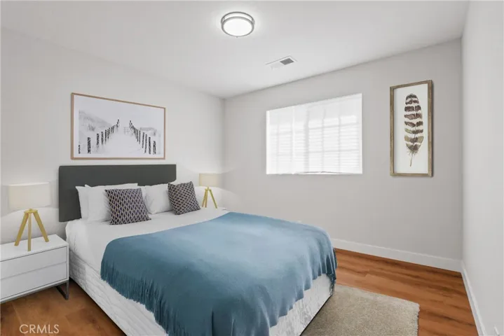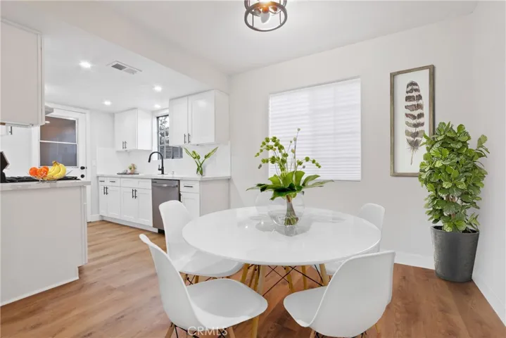 Beautifully updated and move-in ready, this 3-bedroom, 2.5-bath two-story condo is located in a community of just 9 units. The first floor features an open living and dining area, a remodeled galley-style kitchen with white shaker cabinets, quartz countertops, tile backsplash, and stainless steel appliances including a gas range and dishwasher. A convenient downstairs powder room adds functionality. Upstairs, the spacious primary suite includes a walk-in closet, while the two secondary bedrooms offer mirrored wardrobe doors. Both upstairs bathrooms have been fully renovated with new white shaker vanities, quartz countertops, new tubs, tiled shower surrounds, glass enclosures, and updated plumbing fixtures. Additional upgrades include SPC flooring throughout, fresh interior paint, new baseboards, a smart thermostat, and a new water heater. The private patio features decorative tile flooring, and laundry hookups are located in the attached one-car garage. A second parking space is included in a detached garage. Brand new garage door at detached garage. HOA dues cover water and trash.