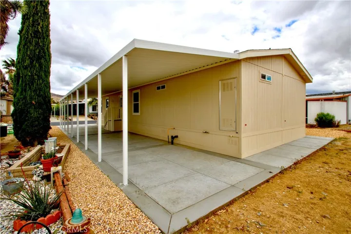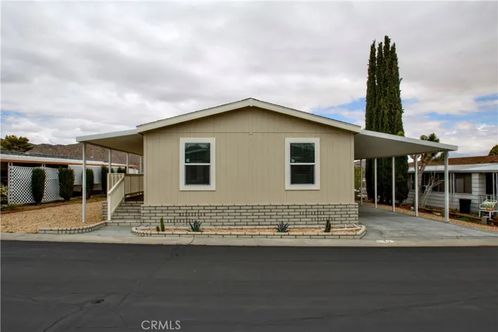 Nestled in the peaceful Gates of Spain mobile home park, this spacious unit features brand new appliances, double pane windows, three bedrooms, two bathrooms, washer/dryer hookups, boasts a bright, spacious layout with a like-new feel throughout. This unit is perfect for someone interested in settling into a quiet, tranquil 55+ community. Weather you are looking forward to relaxing on your porch surrounded by blue skies, taking a quick drive to the local shops, or going for a hike, this home not only has it all, it is centrally located in the heart of Yucca Valley offering easy access to everything you need for comfortable daily living. | Seller is offering a concession of $775 space rent for the first year. Rent will increase to $875 second year. Rent will increase to market rate after third year-inquire with park management for details. Seller financing available!
