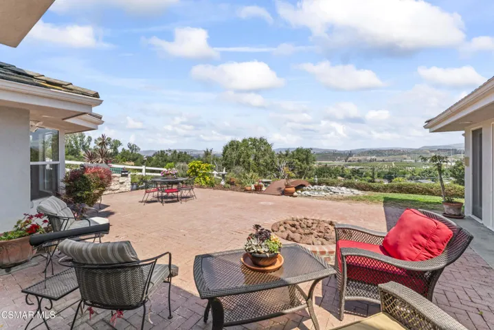 Custom Built Estate with Views, Luxury Upgrades & Expansive Grounds on zoned HORSE PROPERTY – Experience the perfect blend of rural charm and refined living at this stunning custom estate, located in the unincorporated hills of Ventura County, just outside the City of Moorpark. Built in 1992 and thoughtfully updated, this 3,838 sq ft residence sits on a generous 29,054 sq ft equestrian-zoned lot, offering breathtaking views, luxurious features, and exceptional indoor-outdoor living. The main level boasts three spacious bedrooms, 3.25 bathrooms, a formal dining room, home office, laundry room, and a bright eat-in kitchen with double sink and a single sink island with Sub-Zero Refrigeration. A private self contained in-law suite with its own entrance is ideal for guests or multigenerational living. The living room and oversized third bedroom open to a multi-tiered backyard through a full wall of Glass French doors, revealing sweeping valley views. Upstairs, the expansive primary suite includes a sitting area with small balcony, three-sided gas fireplace, high ceilings, and its own full length balcony accessed via another wall of French glass doors. The spa-like en-suite features a steam shower, dual vanities, cedar-lined and walk-in closets, and a laundry chute for convenience.Additional features include:Three-car garageCentral vacuum systemThree brand-new HVAC systems for zoned comfortFire pit and built-in BBQ island, perfect for entertainingAbundant fruit and avocado treesRoom for horses or personalized additions thanks to equestrian RE 20 zoningThis is a rare opportunity to own a private estate with premium upgrades, panoramic views, and versatile space–all just minutes from Moorpark’s schools, shops, and freeway access.