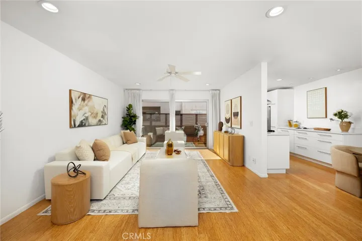 BACK on MARKET-no fault of the property. Stylish top-floor corner condo in Windsor Square, thoughtfully renovated with modern finishes in a classic mid-century building. Bright and airy with bamboo wood floors, recessed lighting, and a sleek kitchen featuring quartz countertops and professional-grade appliances. Enjoy a spacious private patio, two comfortable bedrooms—including a primary suite with a remodeled bath and walk-in closet—plus in-unit laundry, newer central AC, two deeded parking spots (NOT tandem), and a private storage unit. Community amenities include a pool and sauna with low HOA dues. Ideally located near Larchmont Village, Koreatown, and the Purple Line Metro, with excellent walkability to shops, restaurants, and markets. A move-in ready gem with timeless appeal.