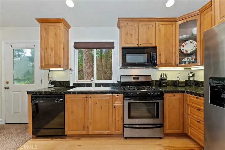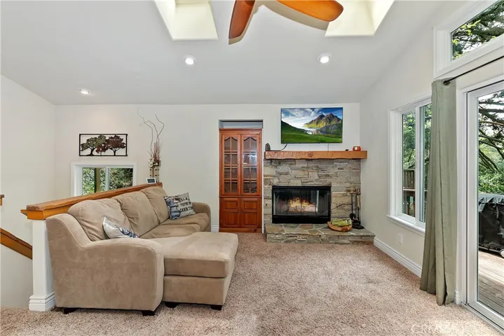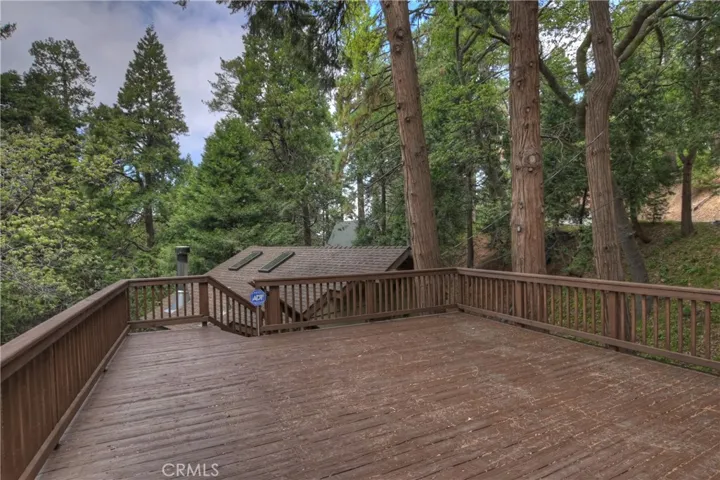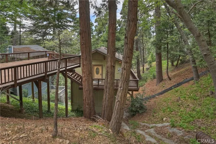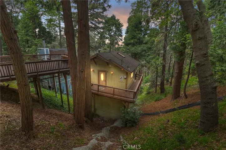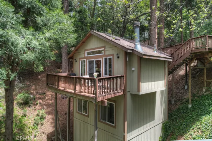 PRICE REDUCED!!! Newer construction (2008) home featuring great room open floorplan with wall of windows to experience the lush woodsy setting! Nicely perched on a HUGE lot with over 1/3 acre (approx. 16,672 SQ FT) of lush pines, cedars and oaks. Great feeling of privacy with a serene park-like setting. Beautiful kitchen with with knotty alder cabinets, granite tiled countertops, wood floors and stainless steel appliances. Added features include gorgeous stack stone fireplace, built in entertainment center, dual pane windows and 3 skylights. Main level also has front, side and rear decks to enjoy nature from. Large parking deck in front of the home for convenient access. Lower level includes large bedroom with high beamed ceilings plus en suite bathroom , guest bedroom also with high beamed ceilings, laundry closet with stackable washer dryer included. Below the home is a large unfinished open basement area for future expansion potential, more bedrooms, an ADU or family room. Home is sold turnkey furnished as a courtesy for the lucky Buyer. Don’t miss this unique opportunity, make your offer today!