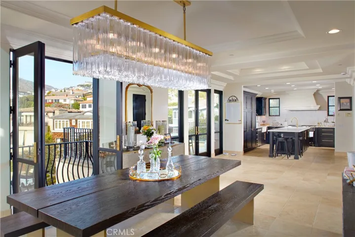 LONG-TERM ($40,000/mo) OR SHORT-TERM ($80,000/mo) FURNISHED RENTAL. From its exclusive setting on the ocean side of Pacific Coast Highway in Laguna Beach’s guard-gated Emerald Bay collection, this luxurious European-stye villa reveals tranquil ocean, bay, Catalina Island and sunset views. Offering three levels of sublime living space in approximately 3,719 square feet, the custom five-bedroom, four-and-one-half-bath residence easily caters to your preferences, whether you enjoy relaxing at home with loved ones, hosting extravagant gatherings, or weaving a bit of both together into one incomparable lifestyle. Stunning crystal chandeliers are featured throughout and make an especially grand first impression in a formal entry. The main level effortlessly combines a fireplace-warmed family room with built-ins and surround sound, an ocean-view dining room, and a remodeled kitchen into a borderless space that opens to a large view terrace, an intimate Juliet balcony, and covered ocean-view deck with fireplace. Showcasing custom mocha Shaker cabinetry, the island kitchen is characterized by a full backsplash, stone countertops, and top-of-the-line appliances including a six-burner range with griddle and custom hood. An elevator and a dramatic staircase provide easy access to all three levels. Tray ceilings, stone and wood flooring, patterned carpet, marble bath finishes, indoor/outdoor audio, designer wall treatments, and fashionable gold hardware and plumbing fixtures shine throughout. A romantic ocean-view balcony enhances the primary suite, which hosts a sitting room with fireplace, two sinks, and a multi-head shower. Residents of Emerald Bay enjoy exclusive access to the enclave’s private beach, heated pool, soothing spa, tennis and basketball courts, scenic parks, playgrounds, and a picturesque location next to the beautiful Laguna Coast Wilderness Park. Home to its own fire station, the community is just minutes from acclaimed schools, downtown Laguna Beach, Crystal Cove, Newport Coast, Corona del Mar and Newport Beach.