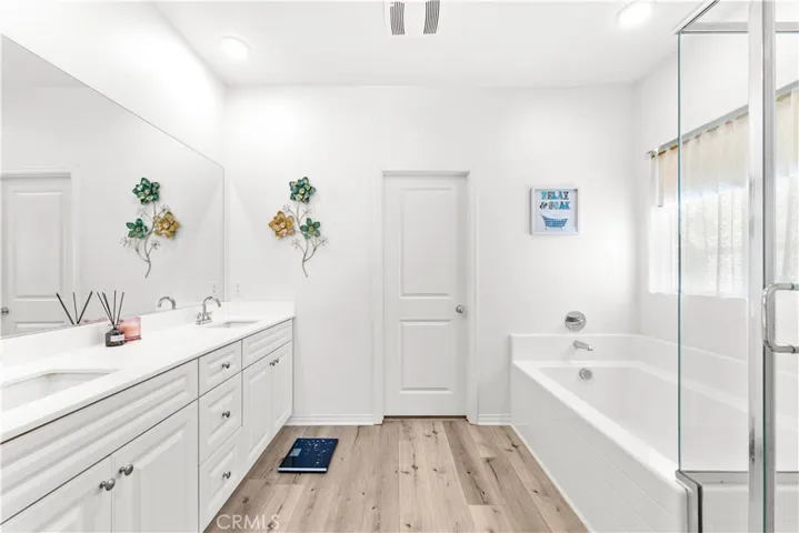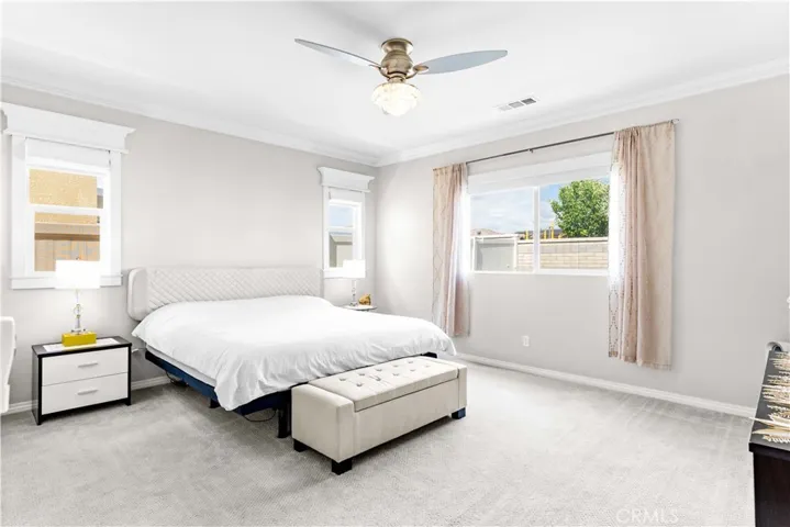 Exactly What You’ve Been Waiting For! Must see this stunning and spacious home, ideally located adjacent to Eastvale! This gorgeous home features 3 bedrooms, 2.5 bathrooms, and a large loft. On the main floor, you’ll find a generously sized primary suite complete with a walk-in closet and an en-suite bathroom featuring dual sinks, soak in tub, and walk-in shower. The open-concept layout connects the living and dining areas to a gourmet kitchen. The bright kitchen boasts elegant countertops and backsplash. Additional main-floor highlights include a powder room, an individual laundry room, and direct access to a 2-car garage with epoxy flooring. Upstairs, you’ll discover two cozy bedrooms, a full bathroom, and a spacious loft—ideal for a family game room, home gym, or entertainment area. Step outside to your private backyard, perfect for intimate gatherings or simply relaxing in comfort. Nestled on a desirable corner lot, this home blends warmth, elegance, and modern convenience—truly a must-see!