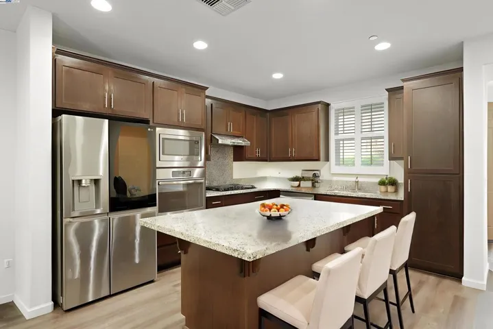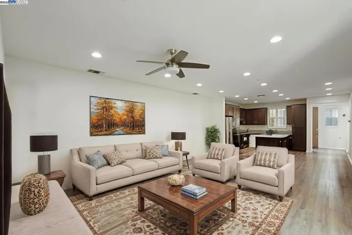 Welcome to this GORGEOUS 4 BR, 3 BATH, LOFT INCLUDED, Solar Equipped, 2 CAR GARAGE property in HANSEN VILLAGE spans 2,274 SQ FT & SITS ON A 3,890 SQ FT LOT with a landscaped backyard. BUILT IN 2016, Designed for comfortable living & Entertaining as the 1st floor comes with a Bedroom & full Bath with walk-in closet . Easy to host family & guests. Living area comes with a OPEN FLOOR PLAN THAT SEAMLESSLY BLENDS THE GOURMET KITCHEN, DINING AREA, & LIVING ROOM. Modern kitchen comes with GRANITE COUNTERTOPS, SLEEK STAINLESS STEEL APPLIANCES, A LARGE ISLAND, AND STYLISH ESPRESSO STAINED CABINETS. Upstairs, you’ll find LARGE LOFT , 3 BR, 2 BATH & Laundry room. Each room comes with ceiling fans & recessed lights. Primary suite boasts a luxurious en-suite bath featuring a large soaking tub, separate shower, his and her sink & walk-in closet . Smart blinds have been installed in the primary suite and loft. Garage comes with a charging outlet, built in cabinets, and an additional refrigerator. The completed backyard is your private sanctuary offering a large patio space, a sprinkler irrigation system & mature fruit trees perfect for playing, relaxing & entertaining. It’s walking distance to Mountain House High , a 2024 National Blue Ribbon School & award-winning Hansen Elementary School.