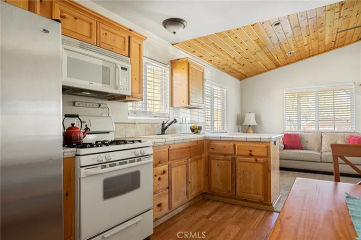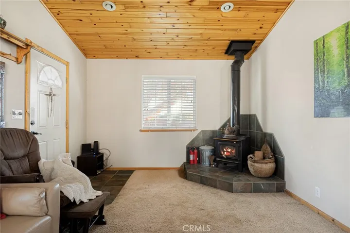 PRICE IMPROVED!!! Welcome to Your Dream Mountain Cabin! Built in 2005, this cozy 2-bedroom, 1-bath mountain cabin is move-in ready and full of charm. Tucked away in a peaceful pocket of Big Bear, it’s a place where you can slow down, breathe deep, and truly enjoy each day. Warm wood finishes, vaulted ceilings, and natural light fill the home with a welcoming and relaxing vibe. Whether you’re relaxing or gathering with friends in the open-concept living area by the wood-burning stove, enjoying a quiet morning coffee, this is a perfect space to relax and recharge. The kitchen has generous counter space and an eat-in dining nook, ideal for everything from quick breakfasts to cozy dinners. Daily chores are eased with handy washer and dryer. Outside is a spacious, south-facing deck that overlooks beautiful mountain views. It’s the perfect spot to BBQ, do yoga, take an afternoon nap, write, paint, or simply enjoy the sun.