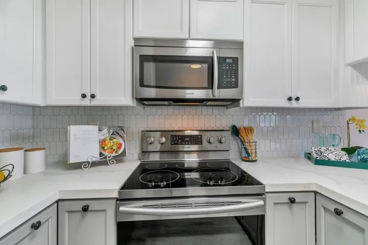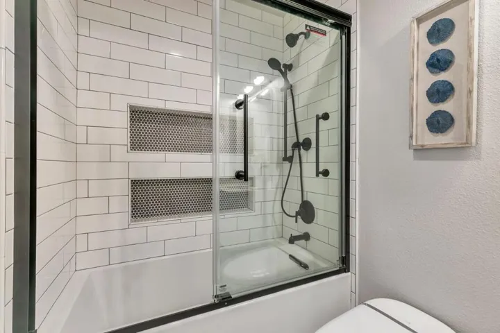 Stunning remodel offers a prime location within the community. As an upstairs end unit, it provides exceptional privacy with only one small common wall and no neighbors above or below. Dual-pane windows bring in plenty of natural light and updated laminate flooring throughout. Fantastic kitchen with lovely white quartz countertops and backsplash, large farmhouse kitchen sink, stainless steel appliances and upgraded lighting. Enjoy the morning sunshine relaxing on the updated private balcony. This beautifully remodeled bathroom boasts spectacular custom tile, an extra-deep soaking tub, dual shower heads (fixed and handheld), a high-end toilet with bidet, heated seat, and foot-sensor flush, plus a touchless hand-sensor faucet. Inviting spacious primary bedroom, complete with a generous walk-in closet. Central forced heating and A/C with Nest thermostat and Nest door lock. Attached two car garage with EV charger, water softener, your own washer and dryer hookups. Easy freeway access, shopping and restaurants close by, Golf Course, Hellyer County Park, library. Low HOA fee $300!